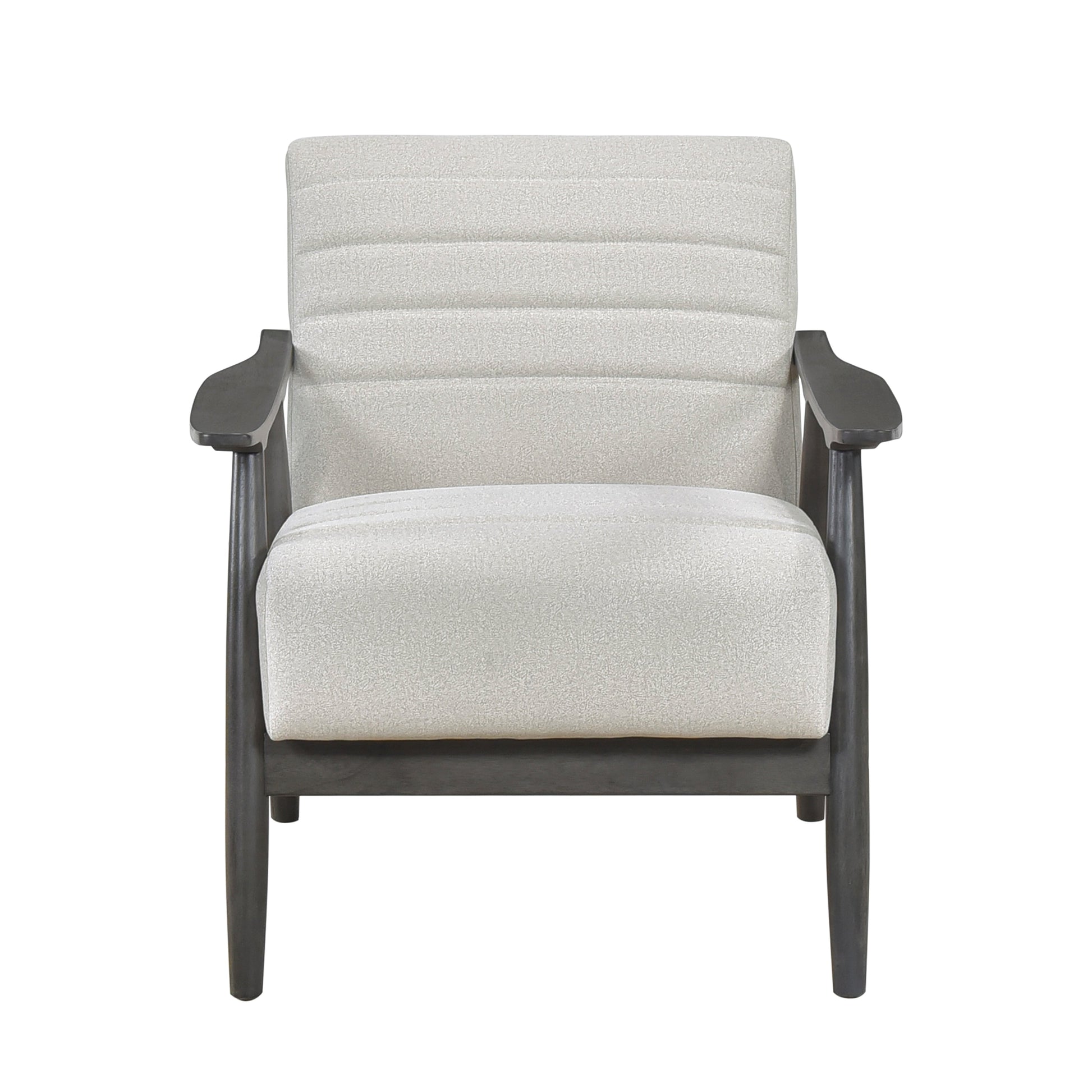 Providing an auxiliary seating option, the addition of the Greeley Collection lends convenient seating within your home’s casual living spaces. The pearl-hued fabric upholstery complements the brick gray-finished solid wood frame and is a subtle complement to your home’s transitional décor.