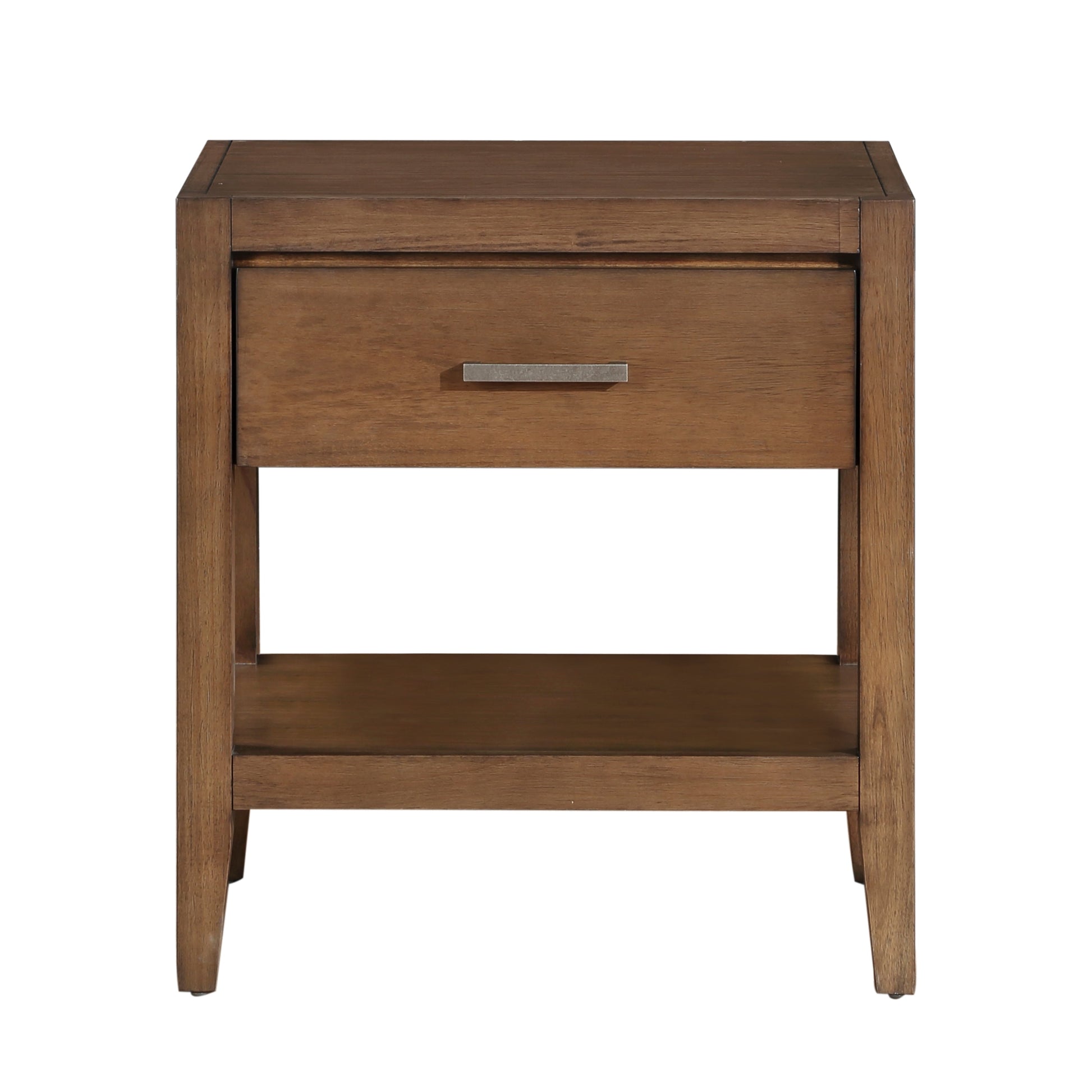 The Evans Collection’s transitional style utilizes hints of modern design to create a versatile aesthetic addition to your bedroom. The unfettered lines of the nightstand present a classic profile. Antique brass finished bar-pull hardware fronts the drawers of the case pieces. A light brown wire-brush finish is utilized to further the stylistic versatility of the collection.