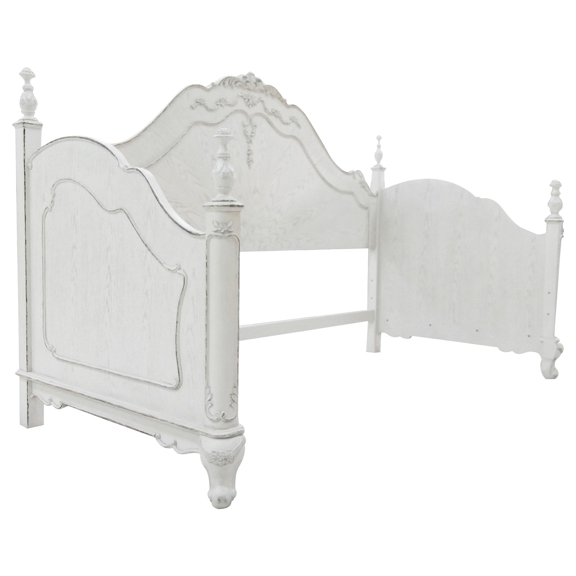 The Cinderella Collection is your little child’s dream come true. The Victorian styling incorporates traditional floral motif carving details on the white with gray rub-through finished twin daybed that will create the feeling of stepping into a fairy tale. Carved finials top the corner posts of each post further lending to the classic look. Chest, dresser, mirror, nightstand, TV armoire, lingerie chest, desk, hutch, desk chair, twin canopy poster bed, twin trundle, full canopy poster bed, twin bed, full bed and queen bed are also available. Link spring is not included.