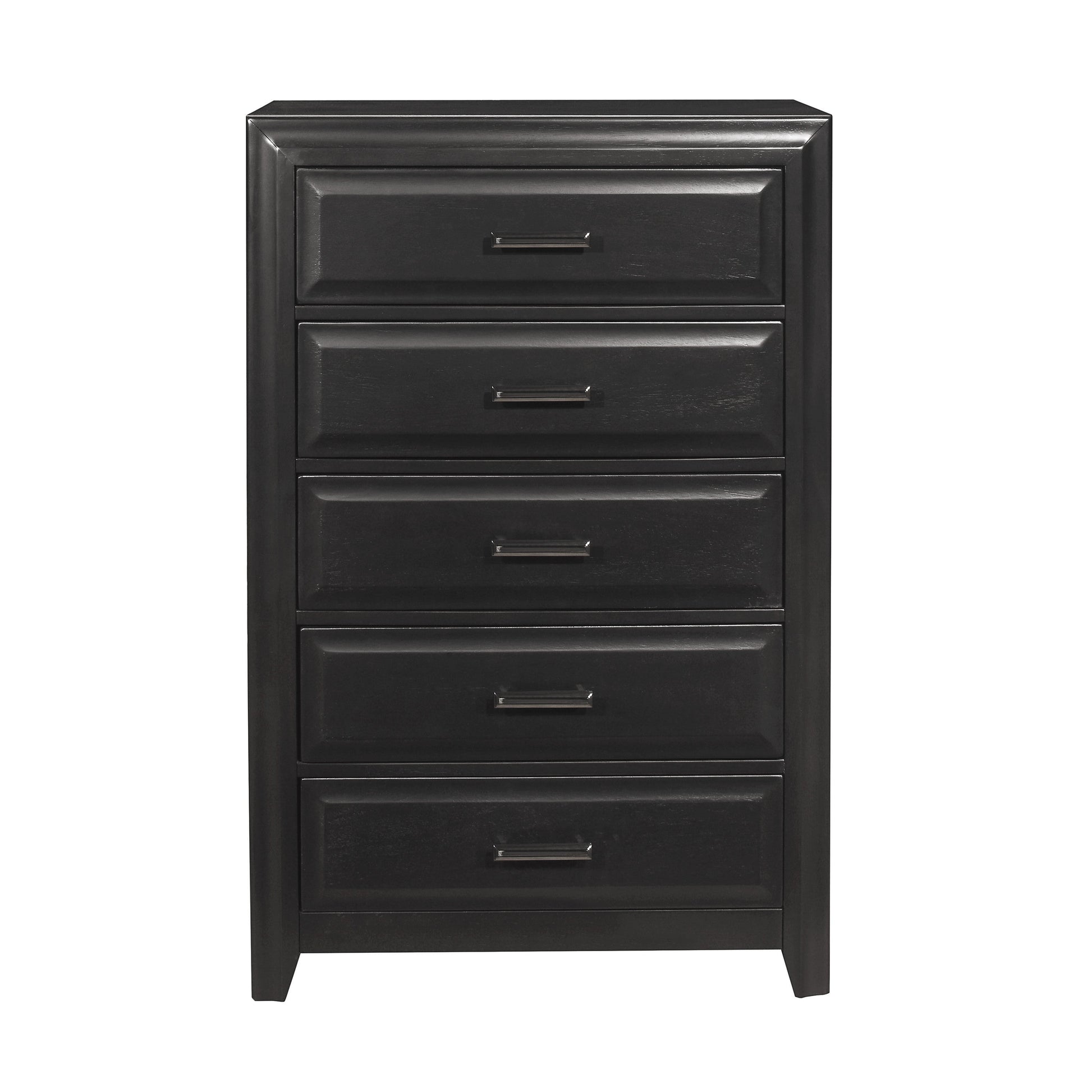 The soft modern styling of the Cordelia Collection creates a look that is a perfect fit for your bedroom. Black bar hardware play subtly against the espresso finish that graces the okume veneer of the chest.