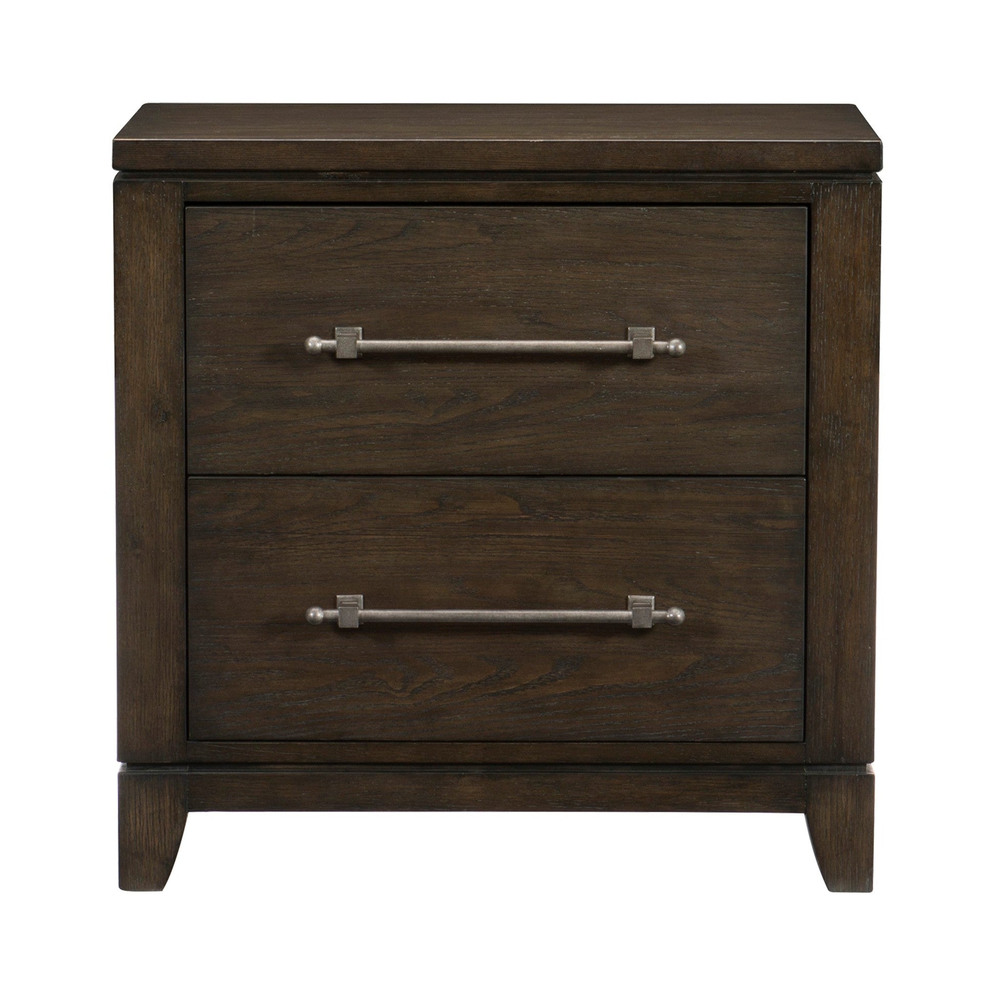 The contemporary styling of the Griggs Collection will be the perfect addition to your bedroom. The nightstand’s prominent ash veneer features a dark brown finish lending to the modern appearance. Elongated fixed drawer pulls center each drawer front further lending to the soft modern look.