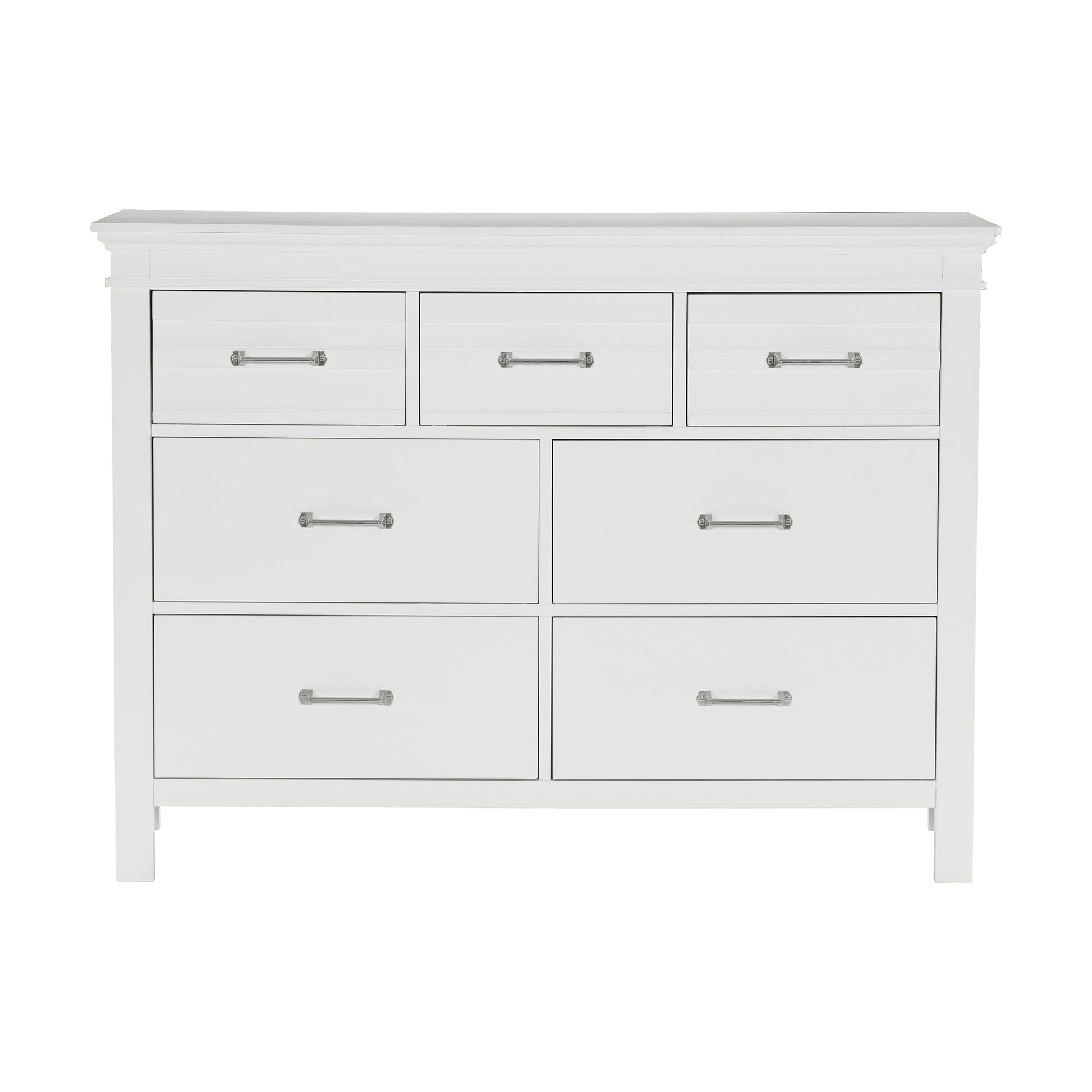 The transitional styling of the Blaire Farm Collection serves as the perfect complement to the rustic aesthetic that inspired the design. Fixed handle pull hardware fronts the drawers while horizontal accent at the top drawers lends visual contrast. The white finish that covers the dresser lends to a versatile look sure to be a perfect fit in your home.