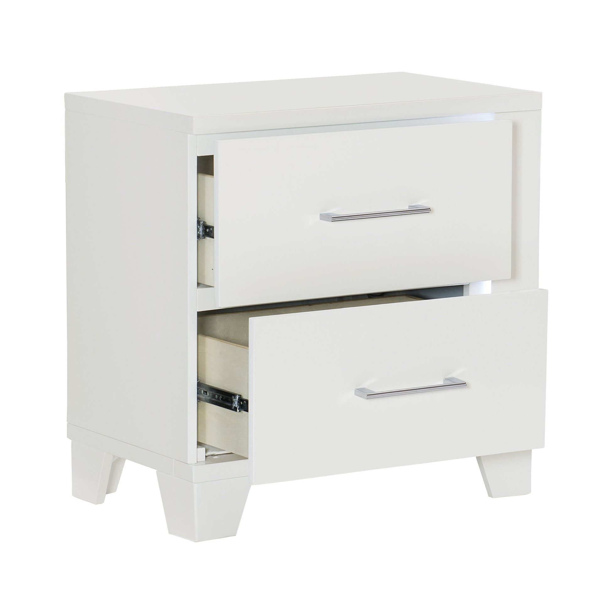 The visually stunning Kerren Collection is a modern study on line and light. LED enhances the front side of the nightstand.