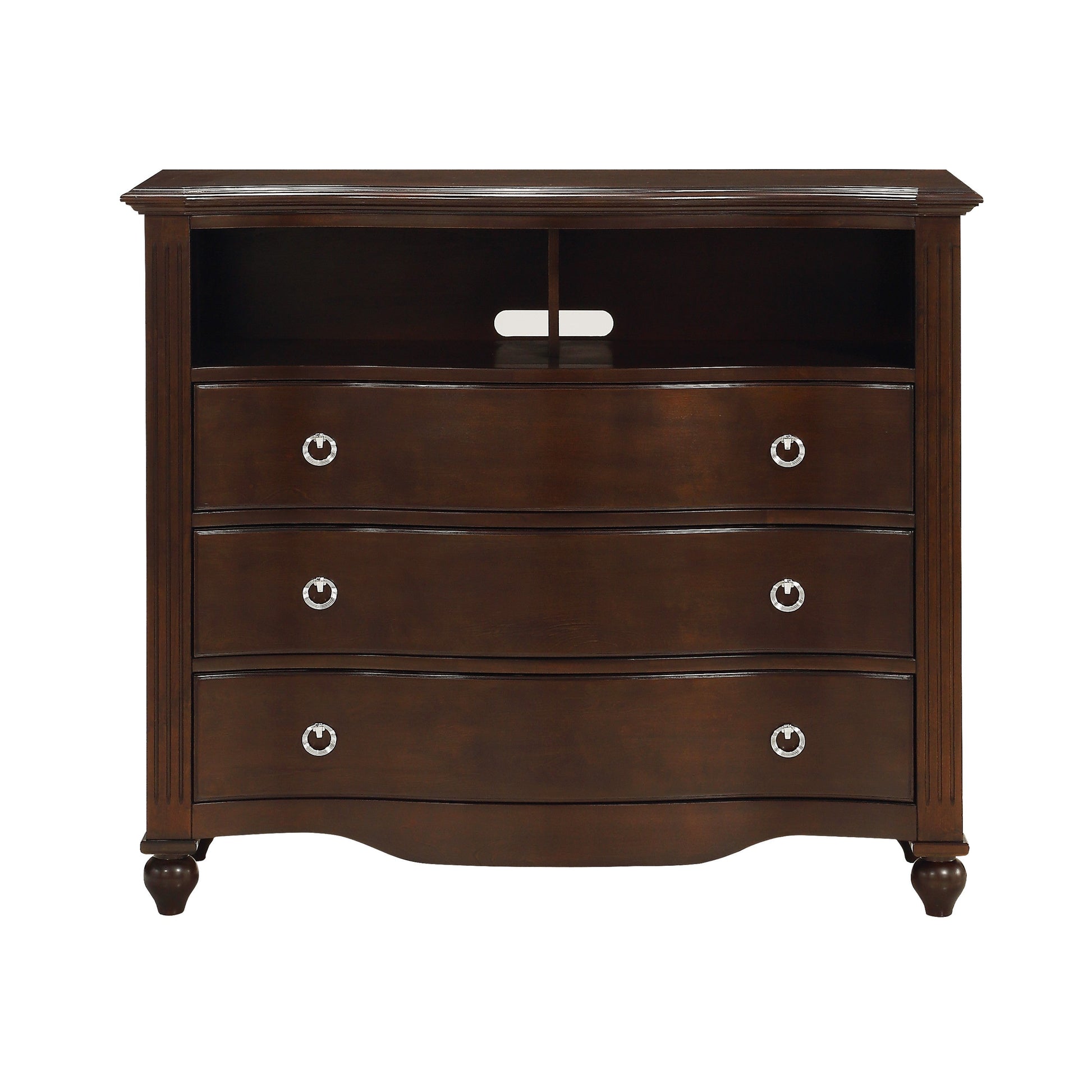 Your child’s bedroom is their space to grow, learn and play. The elegant, yet whimsical, styling of the Meghan Collection will provide the platform from which they will enjoy those experiences for years to come. Design elements that lend to a traditional look include, espresso finish, clipped corner tops, routed pilasters, high polish round pull hardware, turned feet and curved base rails. Downtime is all fun and games with the media chest. Open media storage allows for unobstructed access to your entertainment consoles.