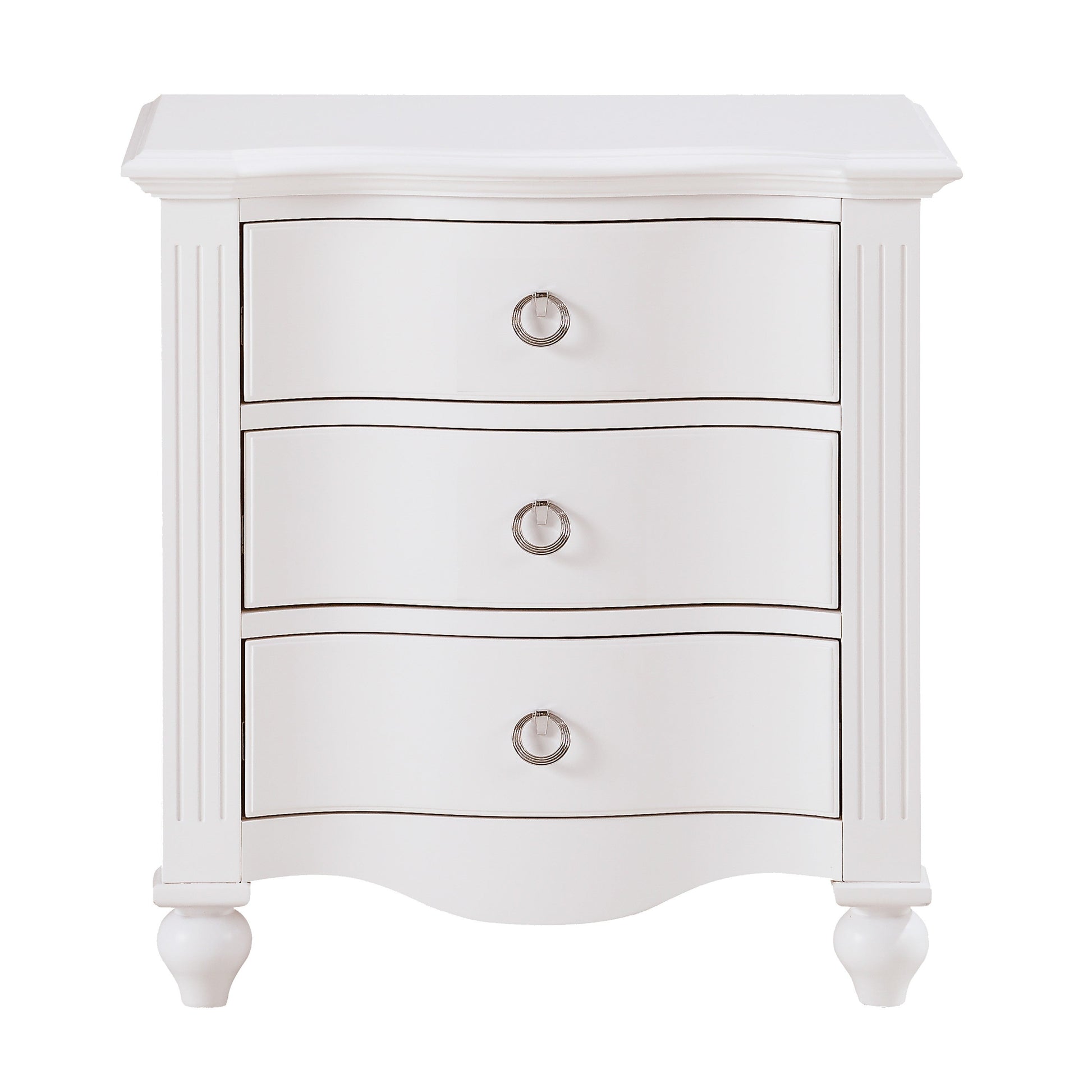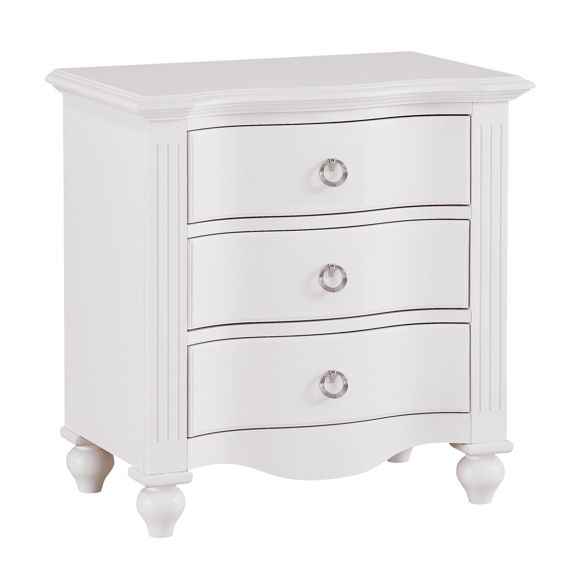 Your child’s bedroom is their space to grow, learn and play. The elegant, yet whimsical, styling of the Meghan Collection will provide the platform from which they will enjoy those experiences for years to come. Design elements of the nightstand that lend to a traditional look include, white finish, clipped corner top, routed pilasters, high polish round pull hardware, turned feet and curved base rails.
