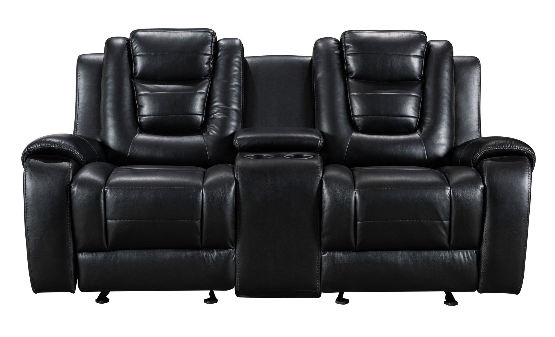 Experience the perfect fusion of form and function with the Jordan Black 3-Piece Leather Recliner Sectional Sofa sleek design. This sectional is not just a piece of furniture; it's a statement of modern elegance for your living space Reclining Loveseat Sectional. The built-in cup holders and storage consoles add practicality to the luxurious experience, ensuring your entertainment needs are met. Elevate your hosting game and impress guests with a sectional that combines comfort and versatility for unforgettable moments.