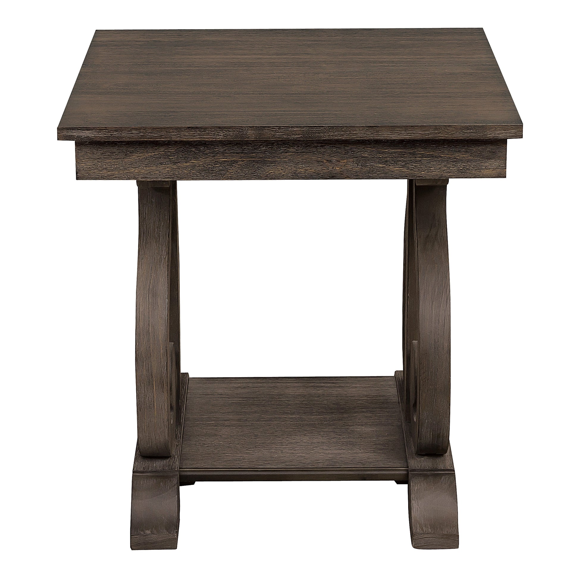 Bold curves provide elegant contrast to the unique look of the Toulon Collection. The heavily scrolled base supports of the tables feature French provincial inspired routing while distressed dark oak finish provides texture to the acacia veneer of this elegant occasional collection.