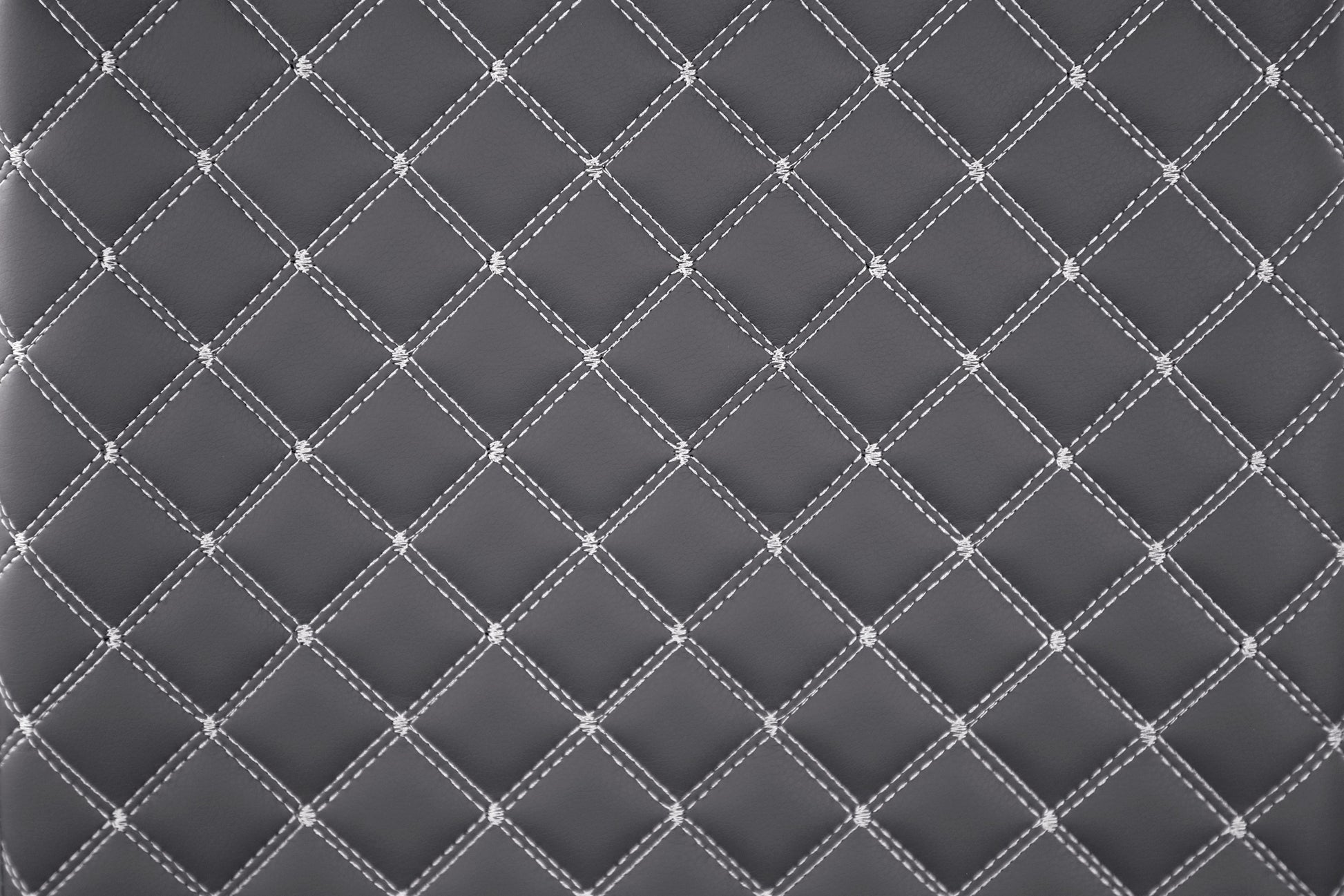 Sleek contemporary styling provides the platform from which you will create your casual dining space in the Yannis Collection. The continuous base of the chair rises to support a gray faux leather seat with diamond pattern stitching, providing additional visual interest.