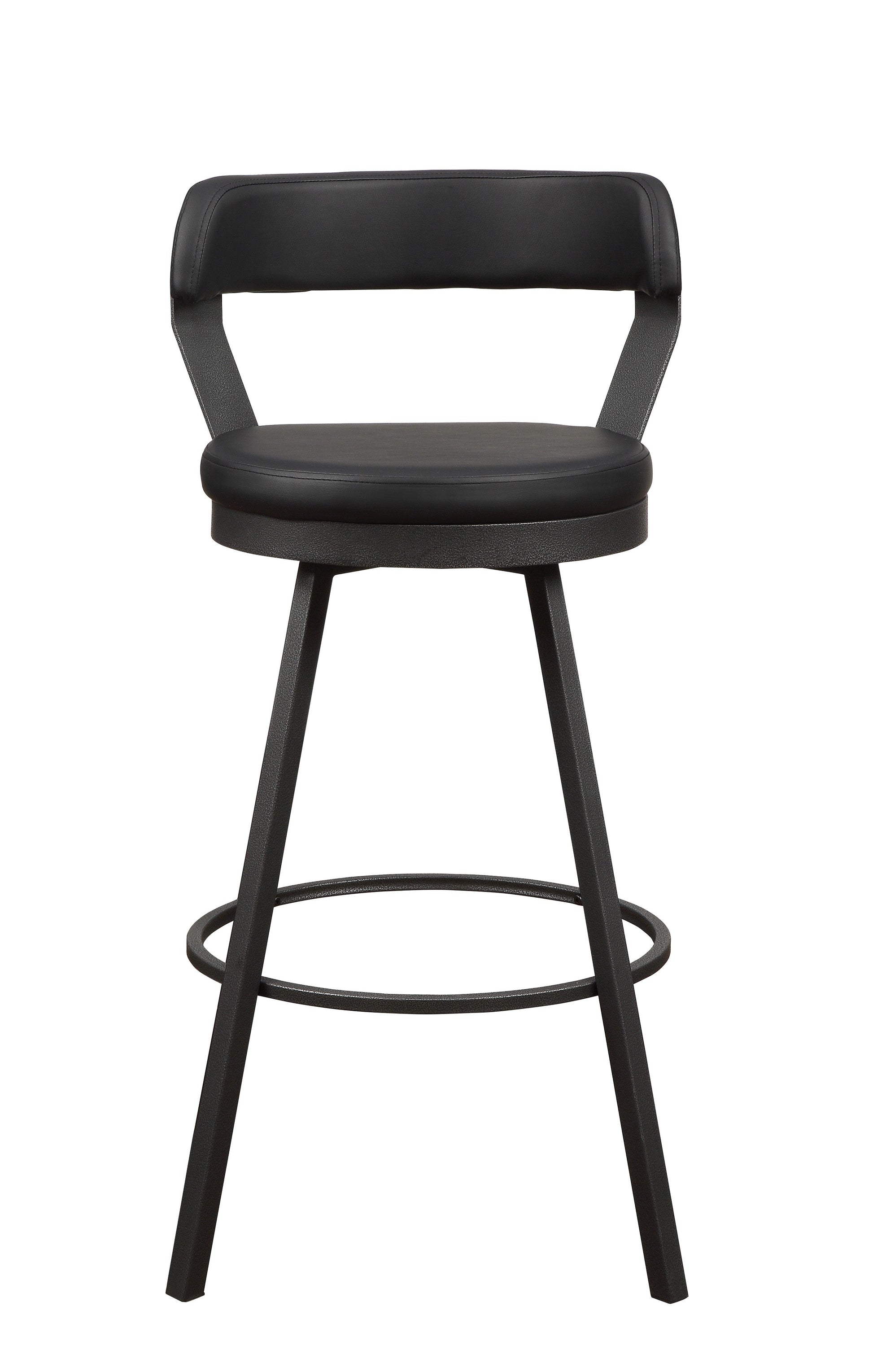 Perfectly styled for your casual dining space is the Appert Collection. This 29-inch pub height chair offering features a dark gray metal base that serves to support the black faux leather round swivel seat. Allowing for perfect placement within your space, the Appert Collection is offered in a 24-inch counter height and 4 additional colors – brown, gray, red and white.