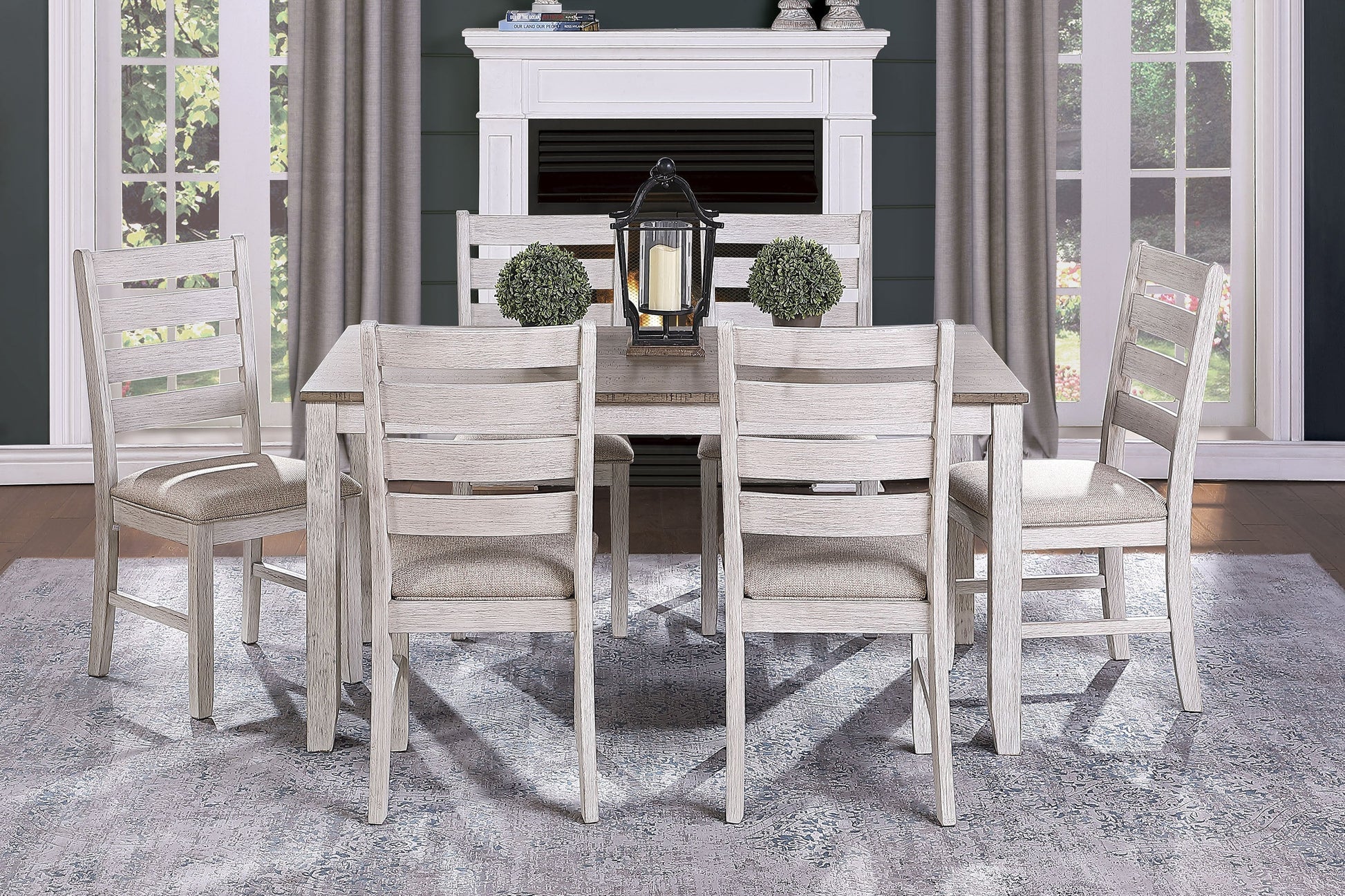 With a neutral palette and transitional design, the Ithaca Collection will place perfectly in your casual dining room. The grayish-white finish of the Ithaca Collection’s wood-framed side chair serves as neutral complement its wheat colored linen fabric seat.