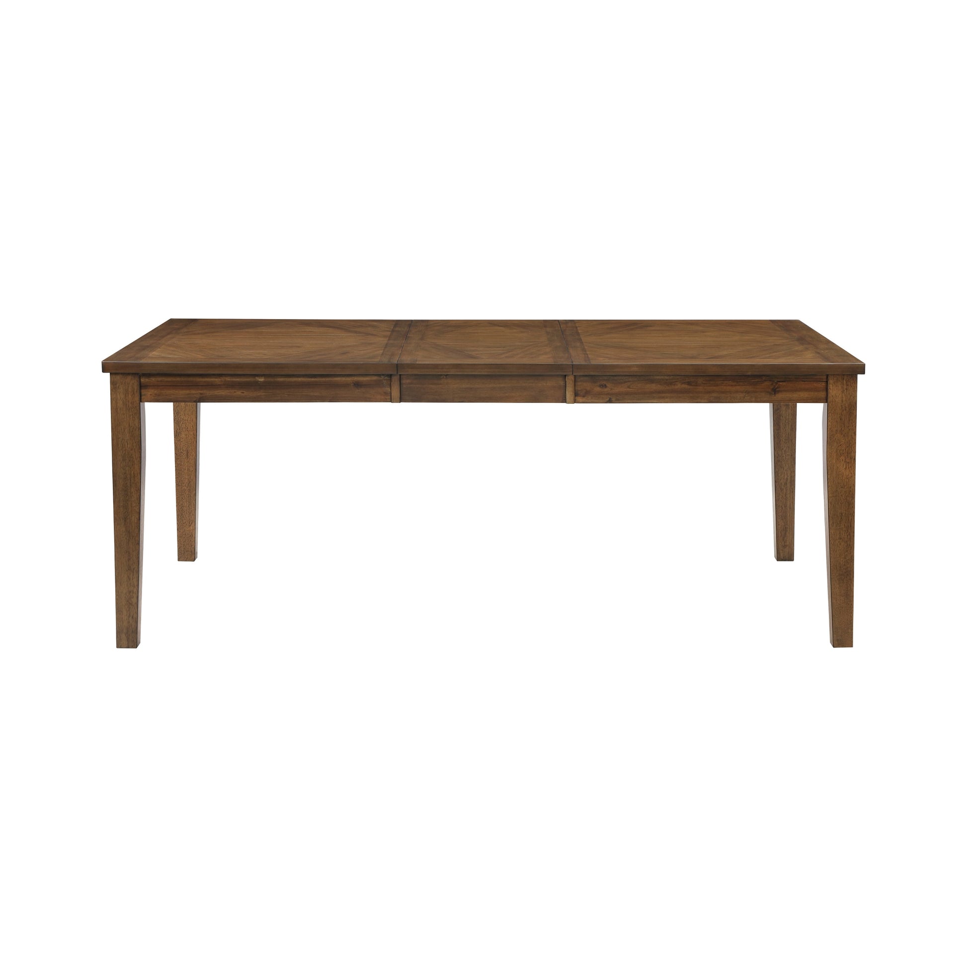 The transitional style and neutral hue of the Counsil Collection creates a perfect complement to your home’s casual dining room. The leg table’s cherry finish over acacia veneer highlights the wood’s distinctive grain. The table features a removable extention leaf.