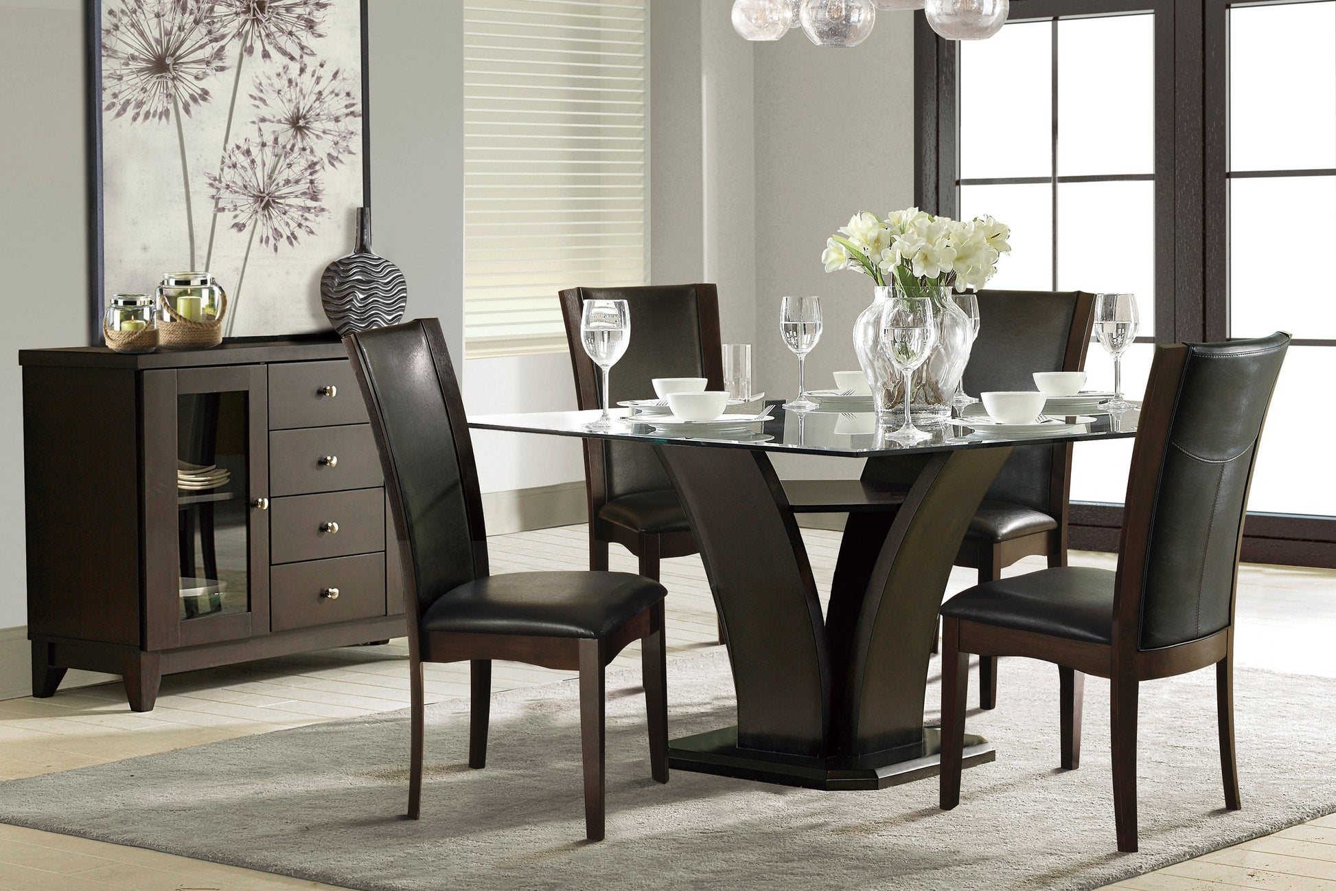 Daisy Collection combines superb visual appearance and fine quality that you need in your dining area. The dining height side chair features clean lines and sleek curves paired with dark brown faux leather. The framing of the chair constructed of hardwood solids and veneers in a refreshing espresso finish.