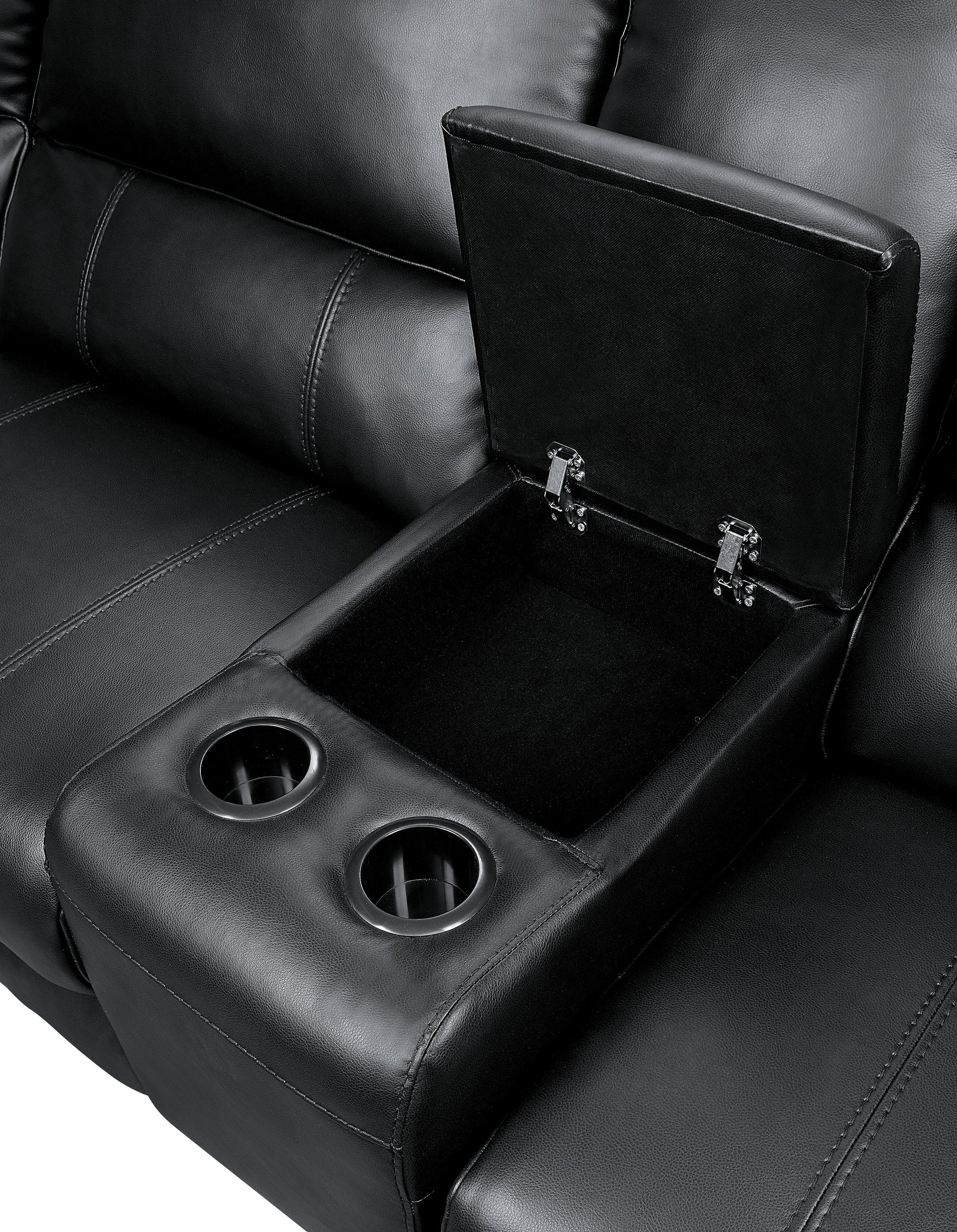Modern convenience paired with comfort and style create the perfect seating option for your home with the Falun Collection. Dark brown faux leather cover. Power reclining mechanisms are engaged with the push of a button, taking you from seated to prone in one gentle motion. Further functionality comes in the form of the side-mounted USB port and cup holder console.