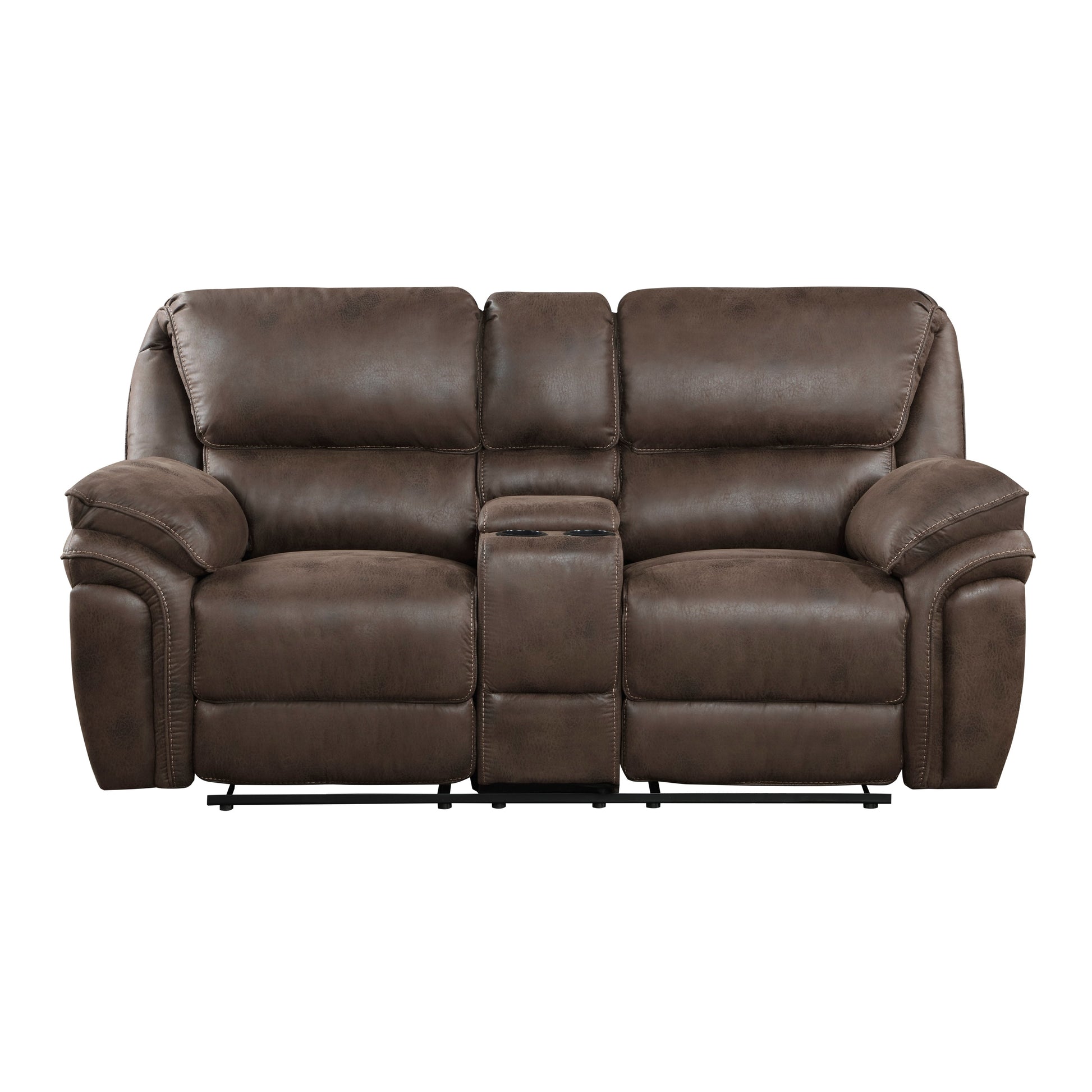 Proctor Brown Microfiber Double Reclining Love Seat with Center Console