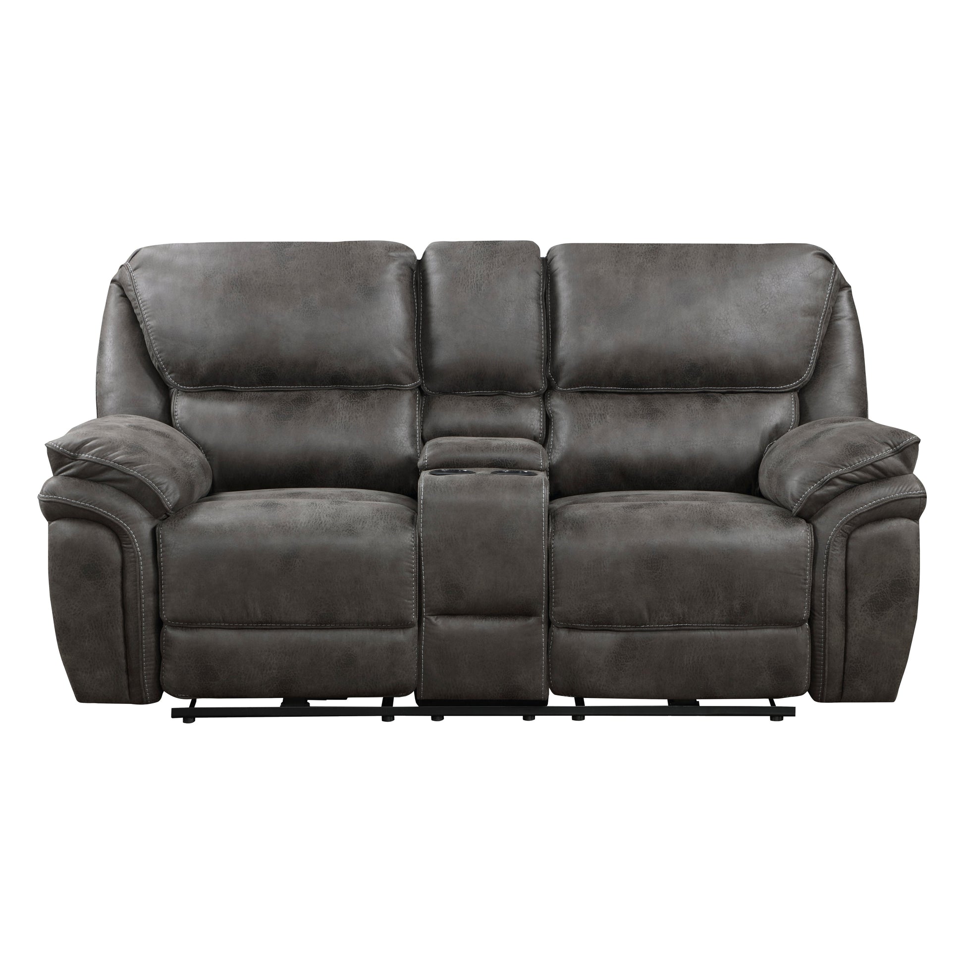 Proctor Gray Microfiber Power Double Reclining Love Seat with Center Console