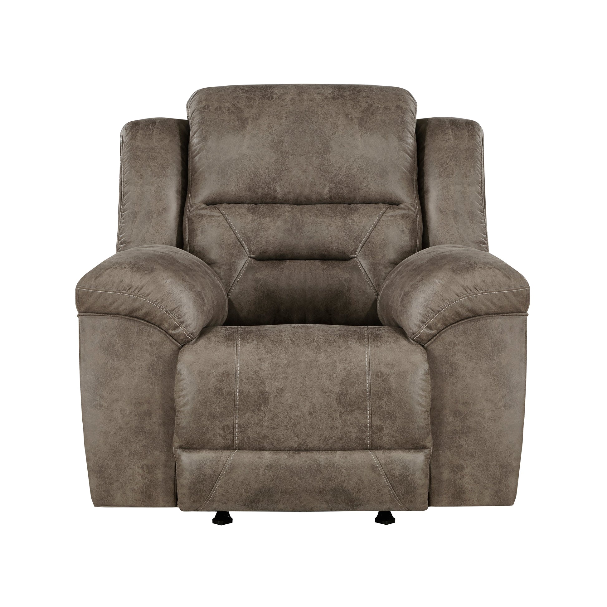 The Hazen Collection’s versatile style and functional design will be an inviting addition to your home’s living room. The reclining chair provides a spot for your relaxation, extending your comfort with a gentle rocking motion. The reclining mechanism is engaged with a pull of the side mounted tab, taking you from seated to prone in an easy motion. Brown polished microfiber upholstery covers the plush pillow-top arms and contoured seating, creating a perfect combination ready for relaxation.
