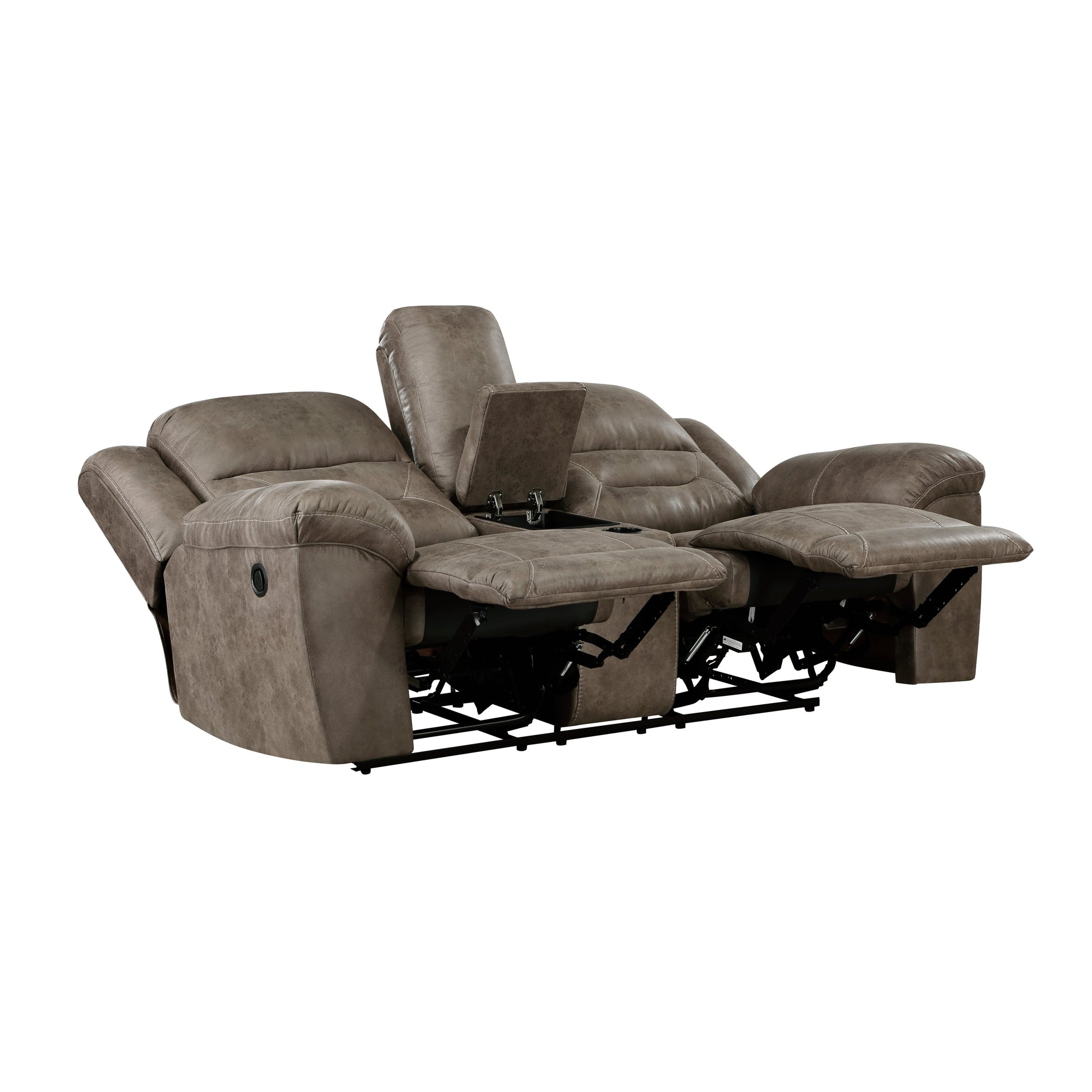 Hazen Brown Microfiber Double Reclining Love Seat with Center Console
