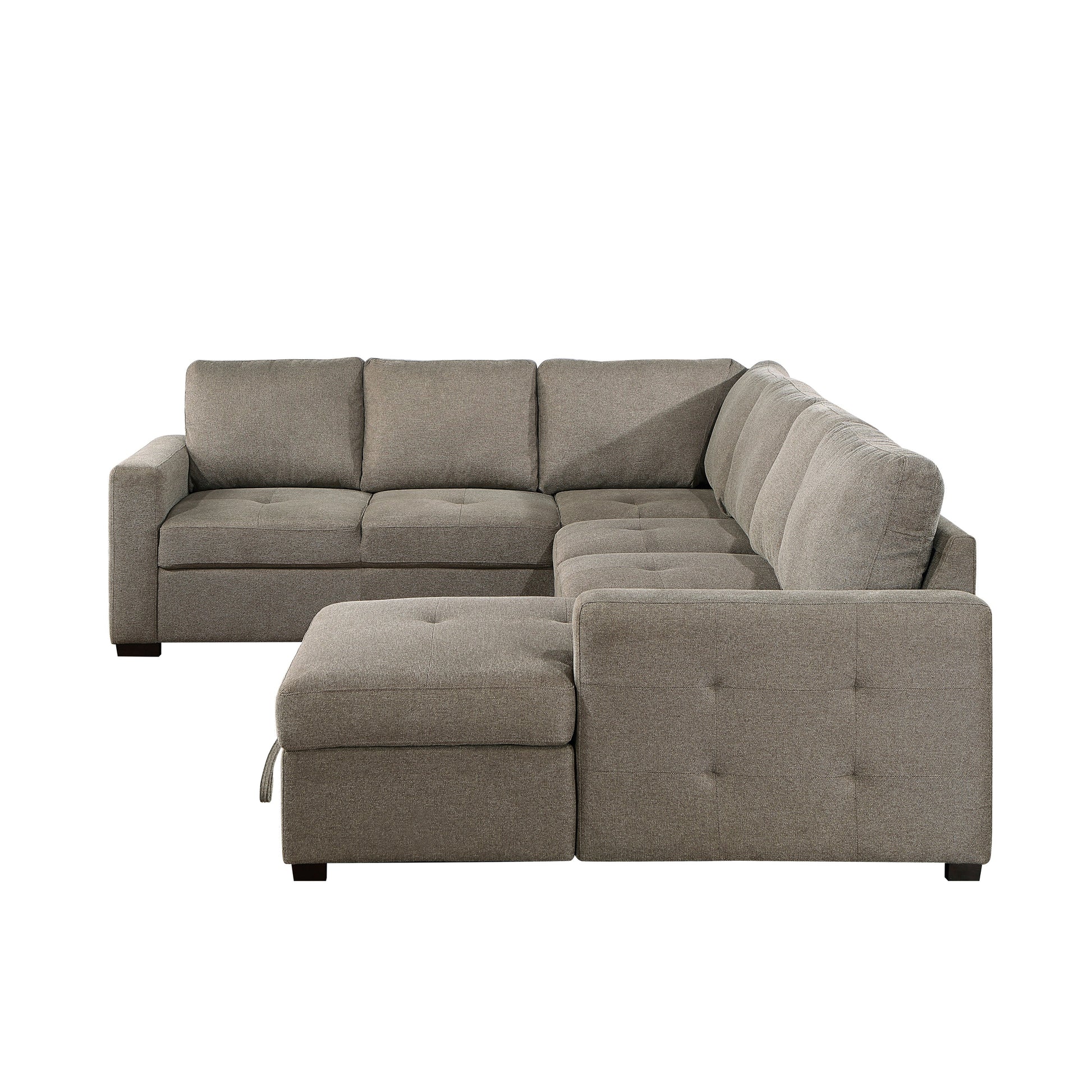 The transitional styling of the Elton Collection is paired with versatility of use to create a multifunctional seating arrangement for your home. A pull-out bed rises from the left-side two-seat armless unit to transform your sectional into a bed while hidden storage within the right-side chaise provides convenient placement of soft goods or accessories. The Elton Collection is offered in a brown textured upholstery, solidifying its versatile design.
