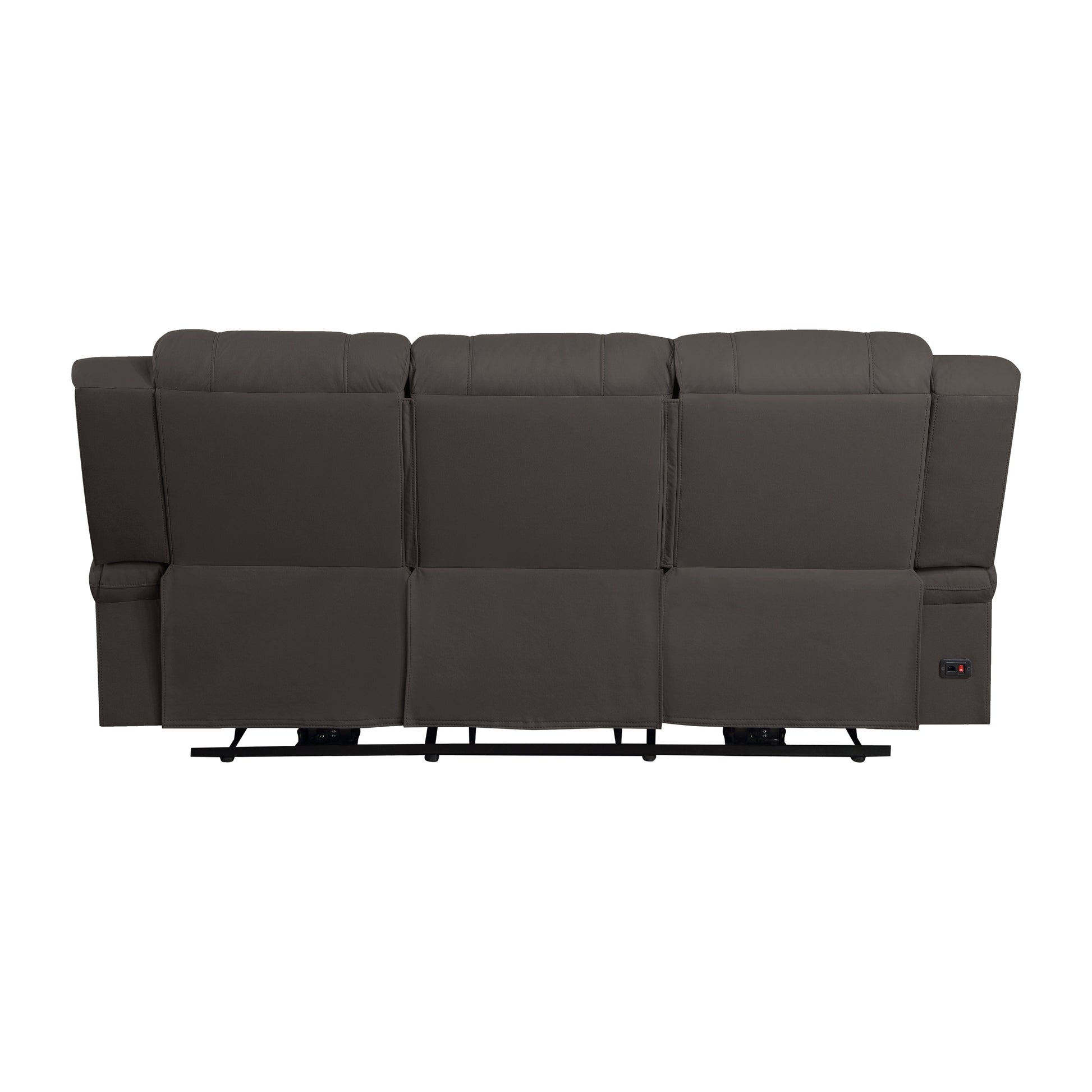 Complementing your living room’s transitional style is the Camryn Collection. The power motion mechanisms of the sofa allows for ease of motion when going from seated to reclined. Contoured stitching defines the seating of the group while the chocolate-hued polished microfiber upholstery that covers the collection is a subtle pop of color for your living room’s décor.