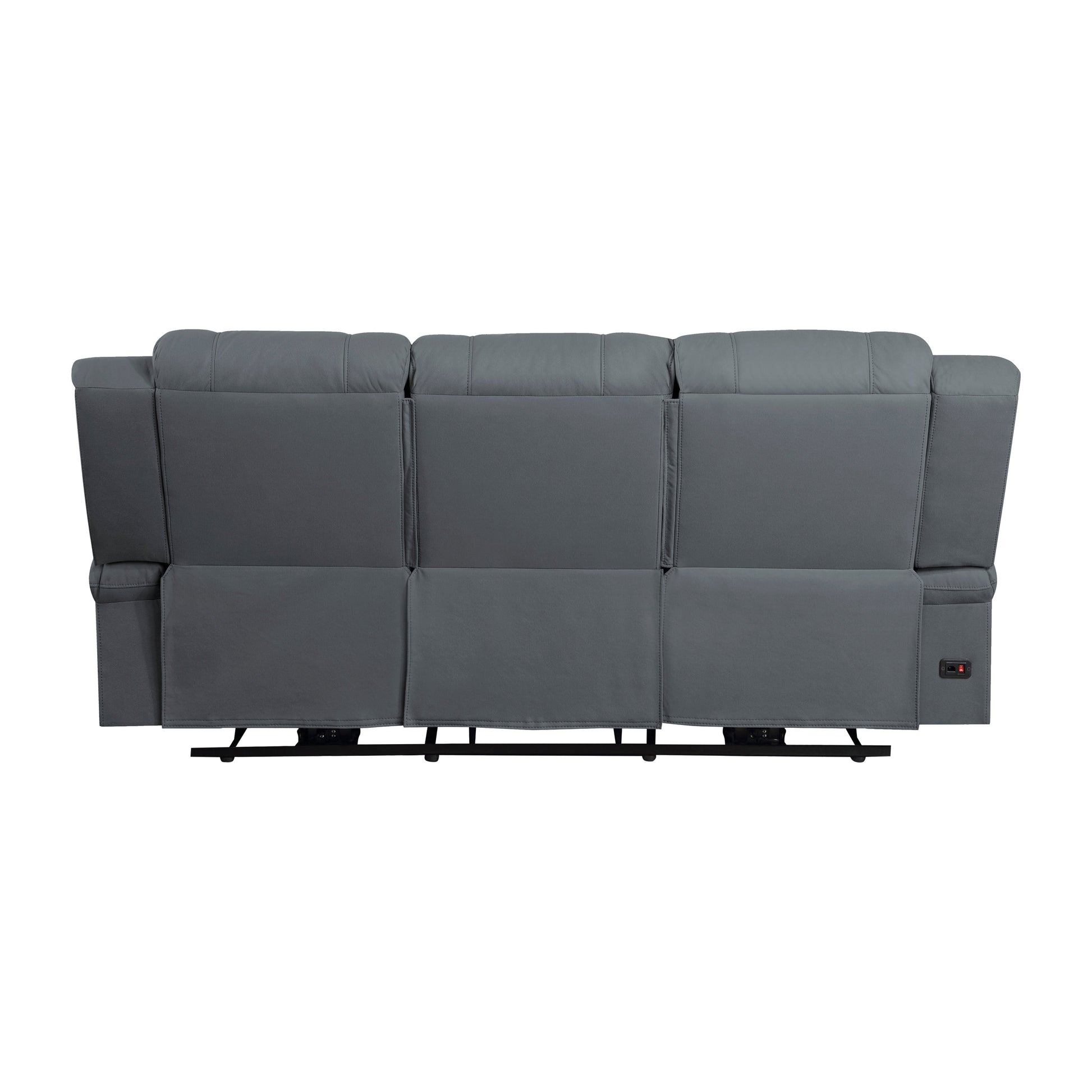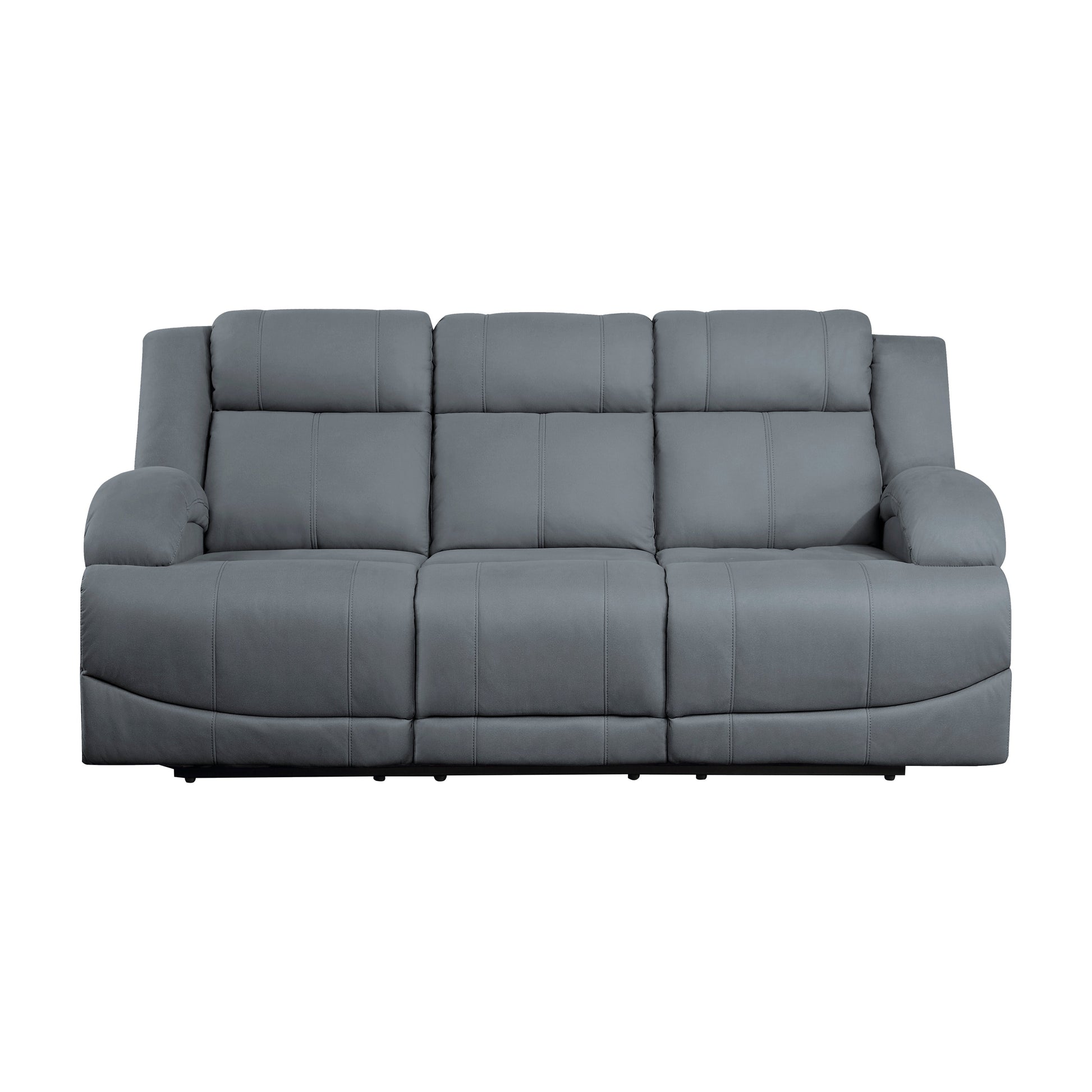 Complementing your living room’s transitional style is the Camryn Collection. The power motion mechanisms of the sofa allows for ease of motion when going from seated to reclined. Contoured stitching defines the seating of the group while the graphite blue-hued polished microfiber upholstery that covers the collection is a subtle pop of color for your living room’s décor.