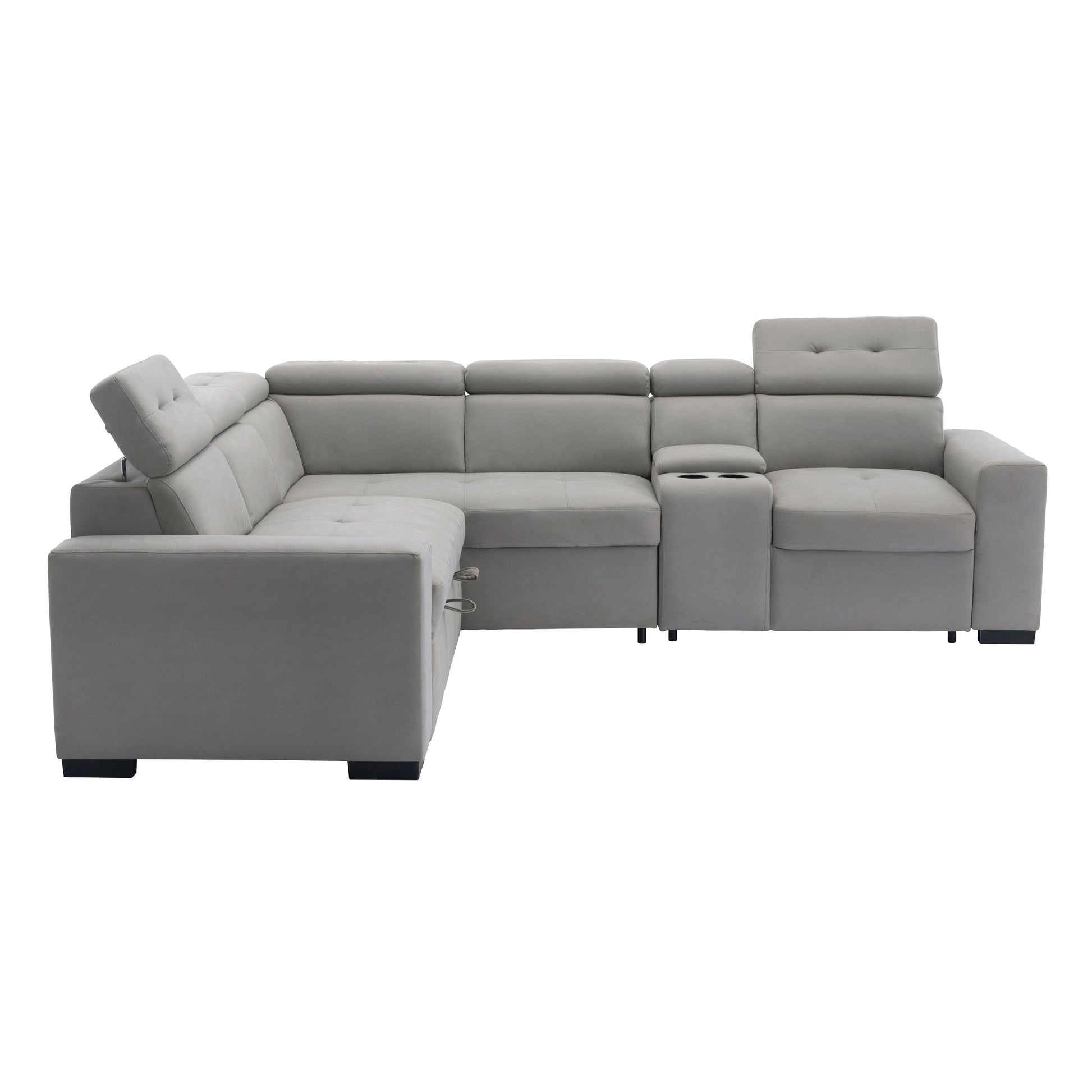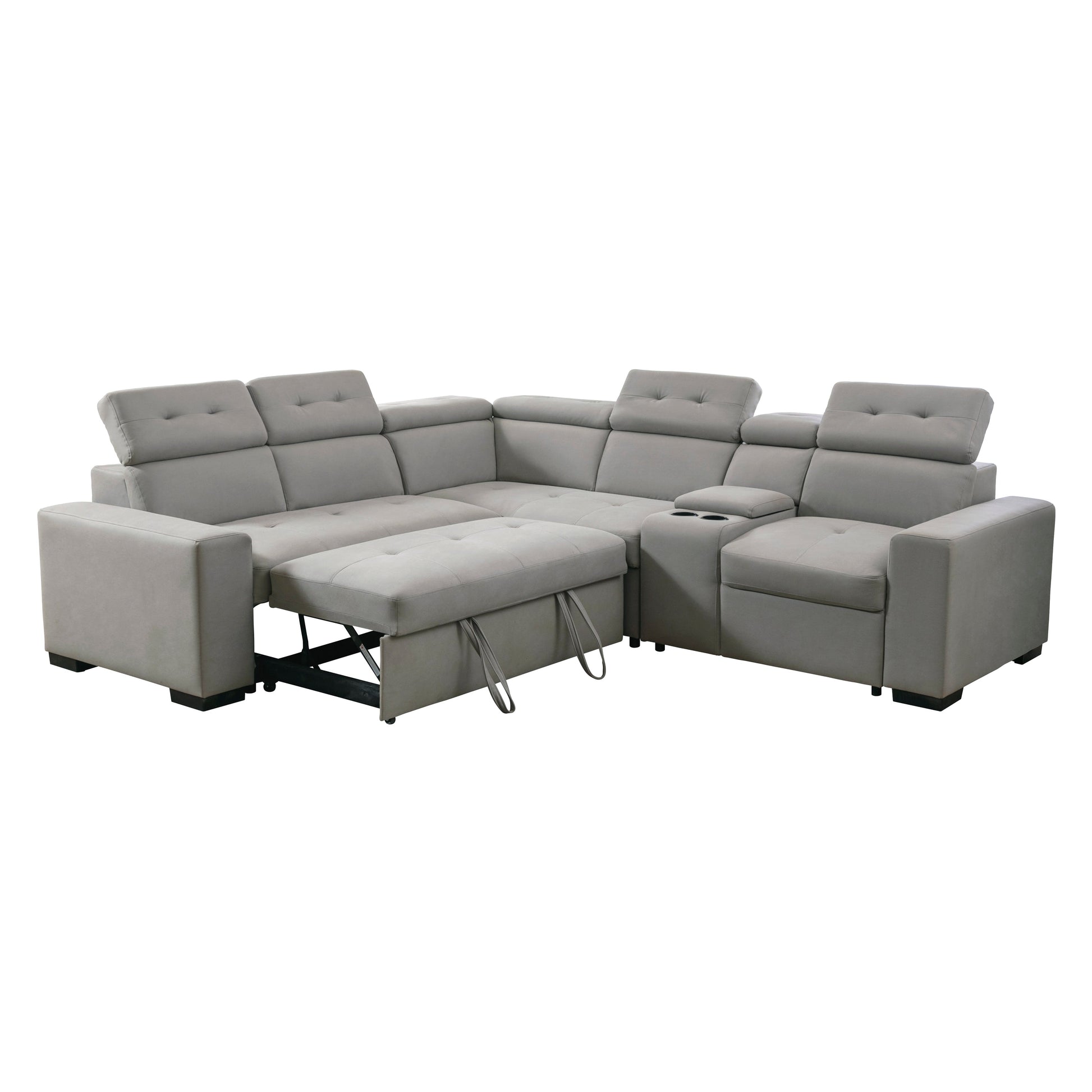 Farrah Light Gray 3-Piece Sectional with Adjustable Headrests, Pull-out Bed and Console