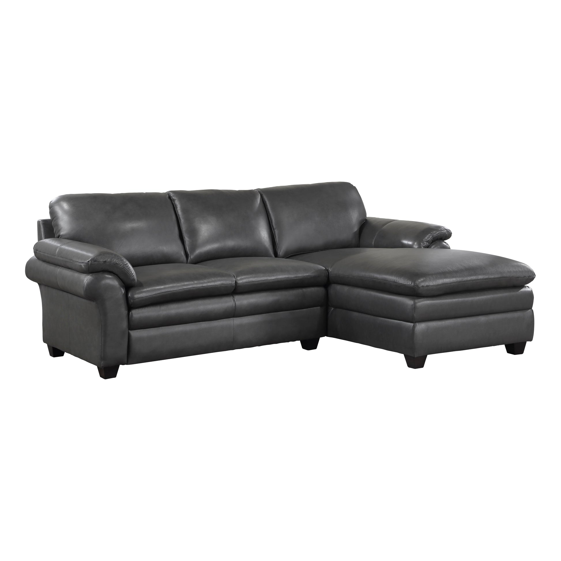 Exton Gray Leather 2-Piece Sectional with Right Chaise
