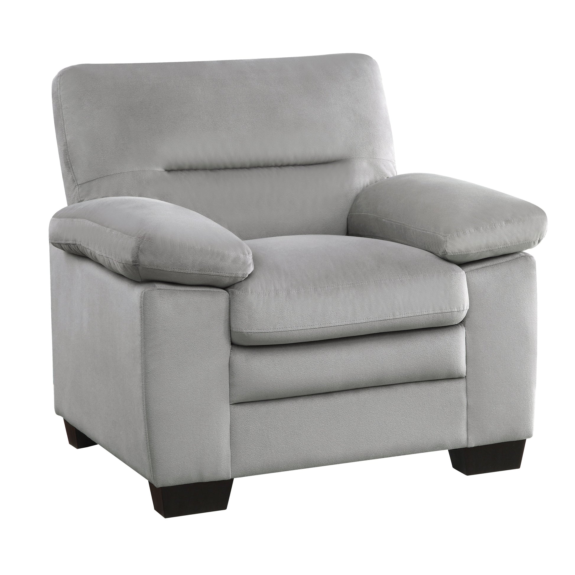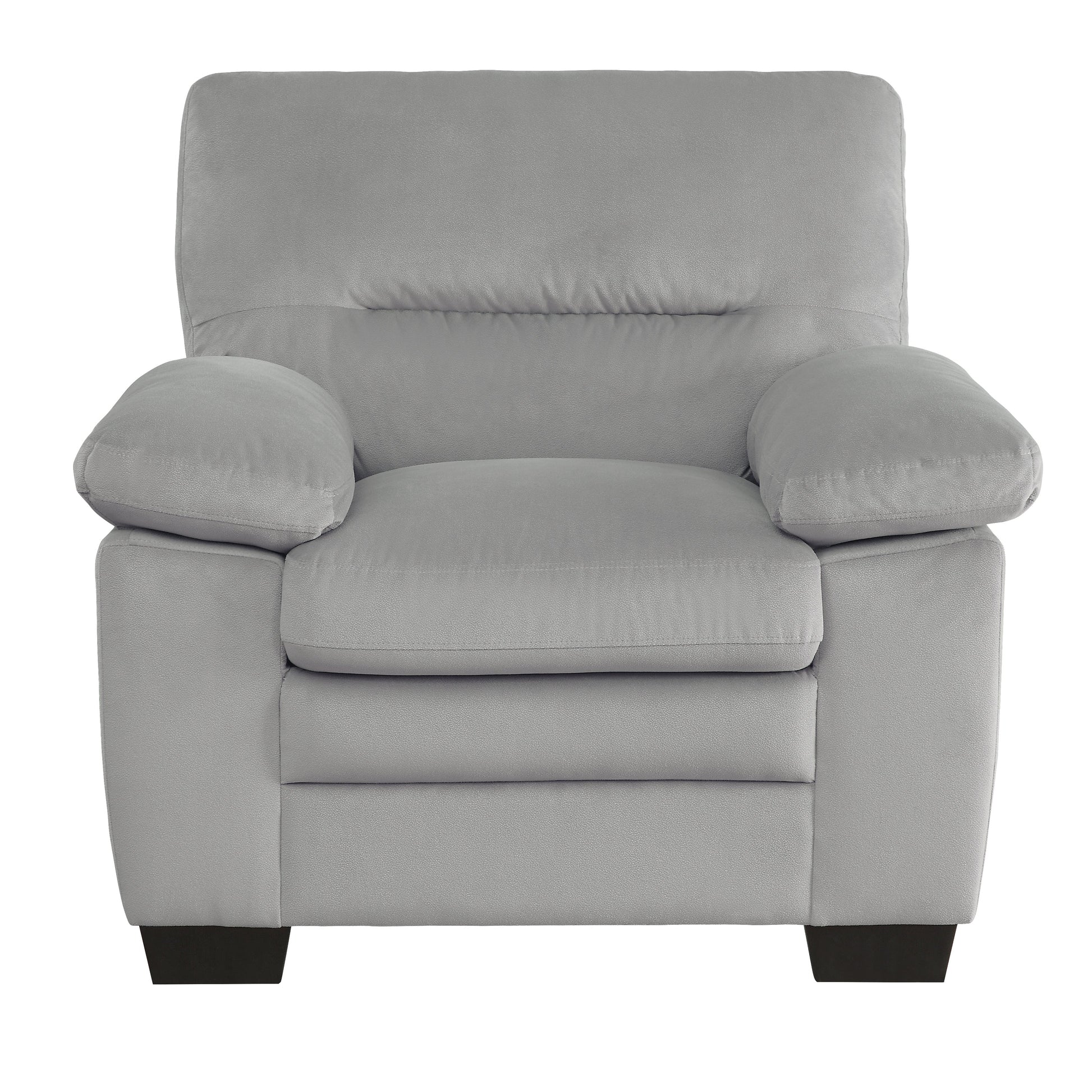 The sleek profile of the Keighly Collection will be the perfect complement to your modern living room. The chair features a gray fabric cover for the ultimate decorative versatility, while pillow-top arms and plush seating create a platform that is perfect for your comfortable seated relaxation.