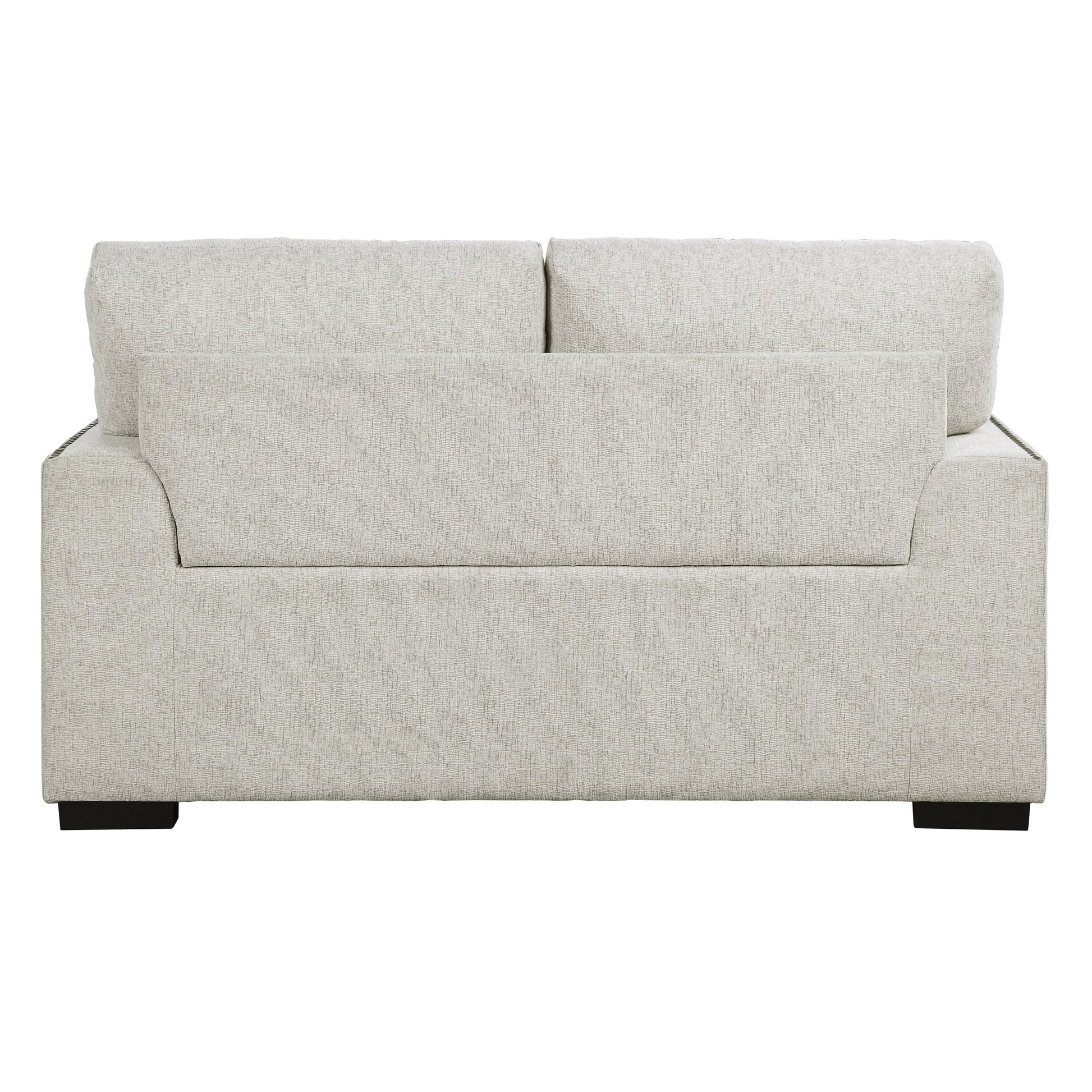 A perfect addition to your casual living room, the Morelia Collection’s decoratively flexible style allows for placement in myriad living room settings. Covered in beige chenille, the profile of this love seat is defined by its nailhead trim, loose back cushions and track-style arms, creating a look that is perfect for your home’s living room.