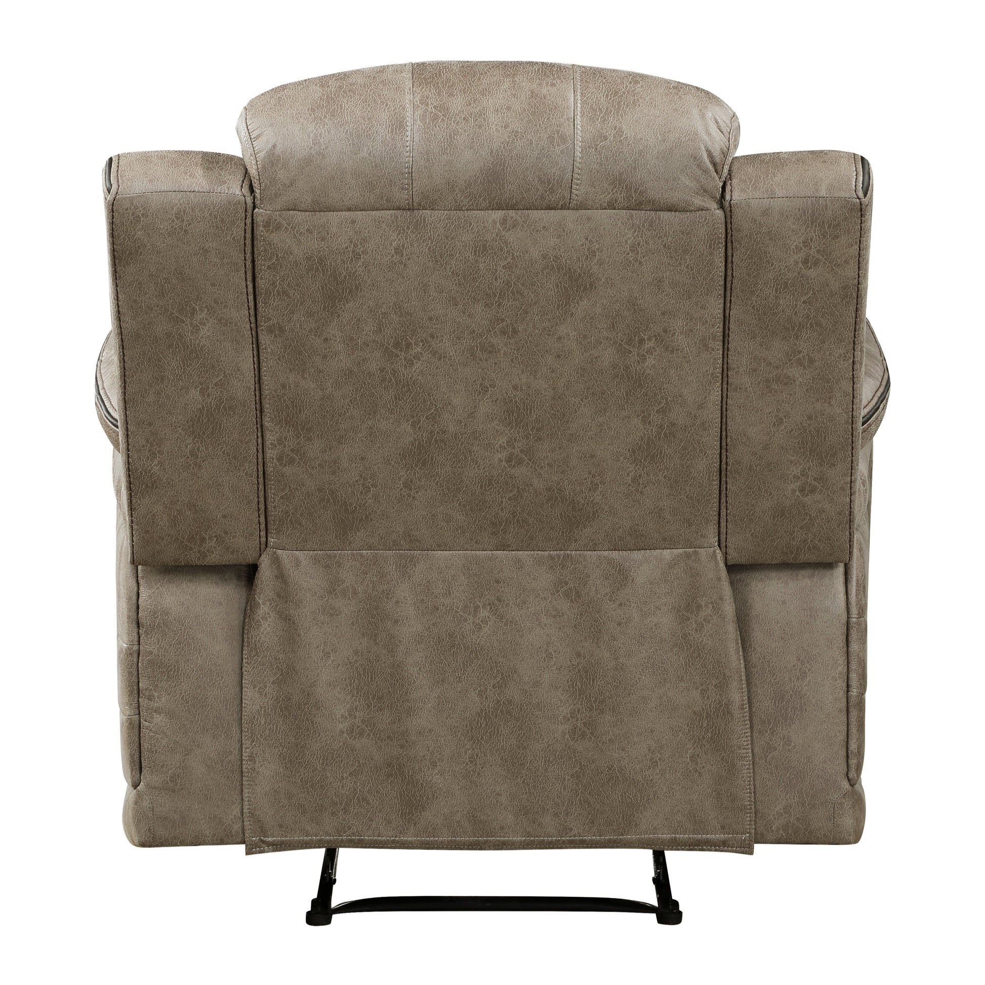 The design of the Centeroak Collection provides a platform for your relaxing downtime. From the classic transitional style to the versatile neutral color of the sandy brown polished microfiber fabric covering, this chair is the perfect addition to your living room. Plush seating features vertical tufting, pillow-top arms, enhanced by the reclining mechanism which is engaged with a pull of the side mounted tab, taking you from seated to prone in an easy motion.