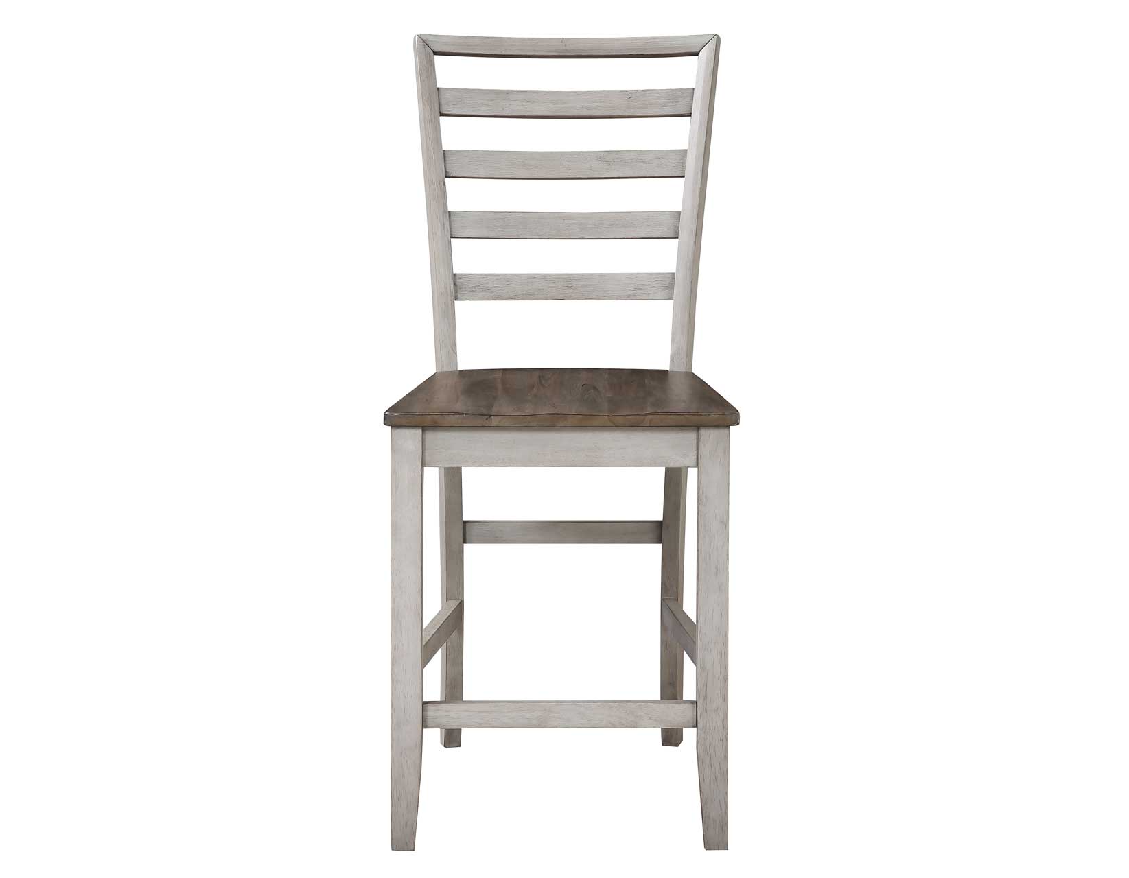 The Abacus Counter Chair represents relaxed casual styling in a two-tone smoky alabaster and putty finish. The ladderback design is shaped for sitting comfort and the wooden seat is shaped for comfort. The transitional style works well with farmhouse, contemporary or transitional styles and the neutral finish complements many interiors. Pair with the Abacus Counter Collection or use in a kitchen or other counter height area.