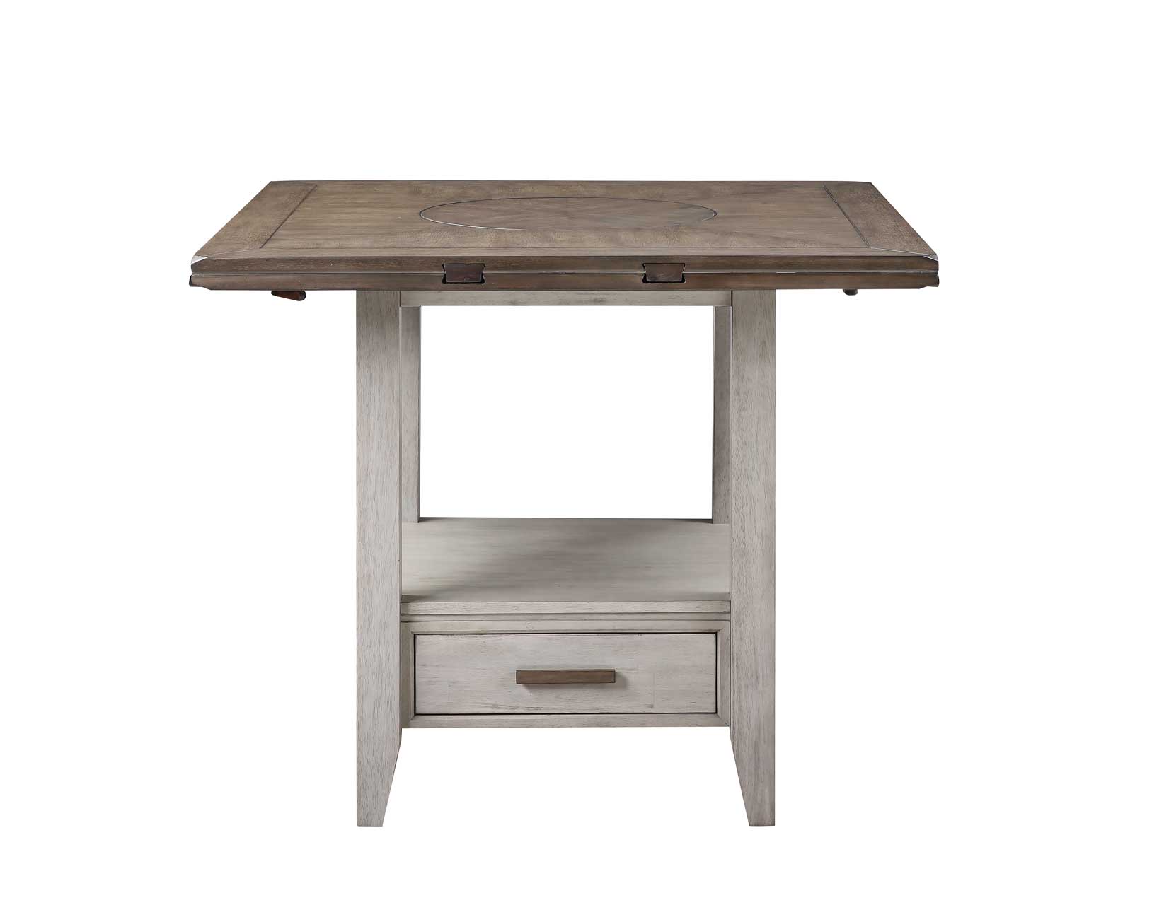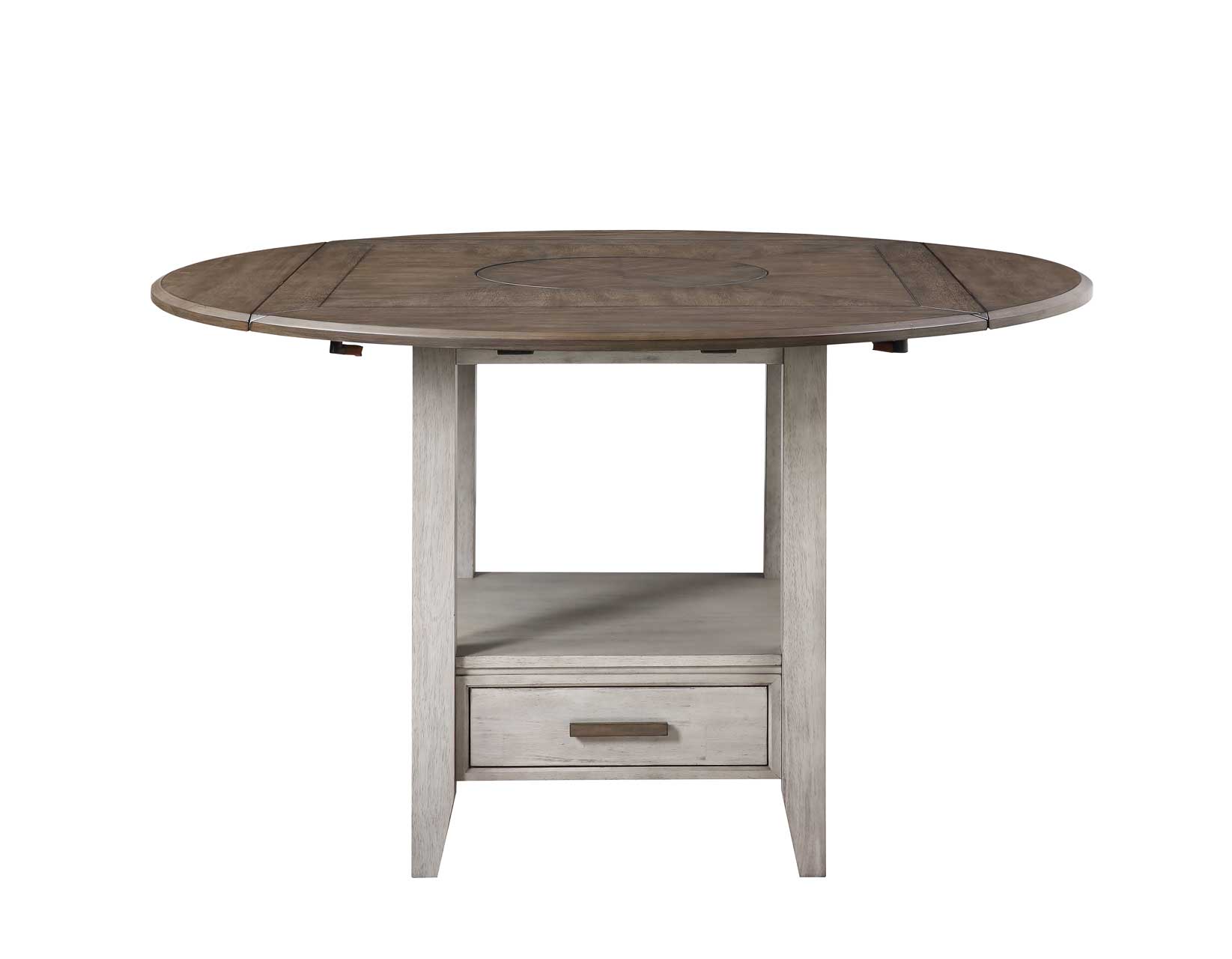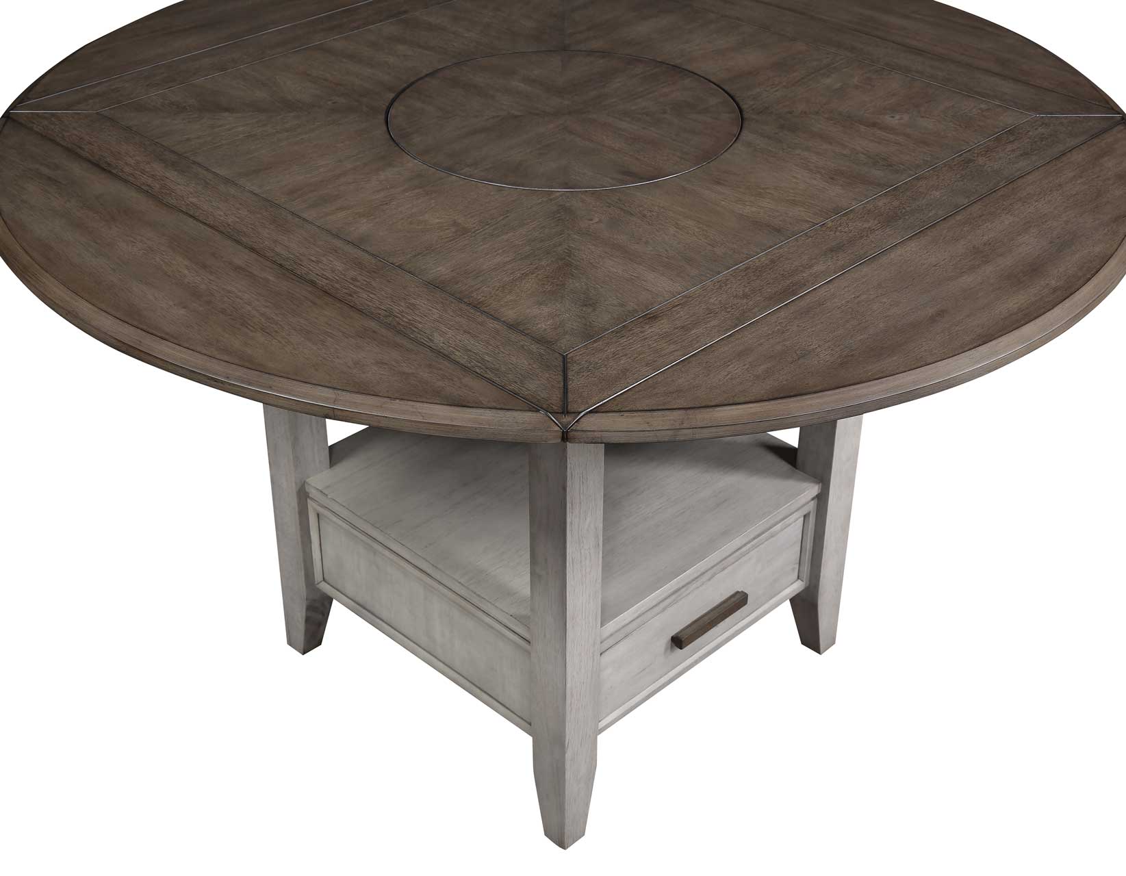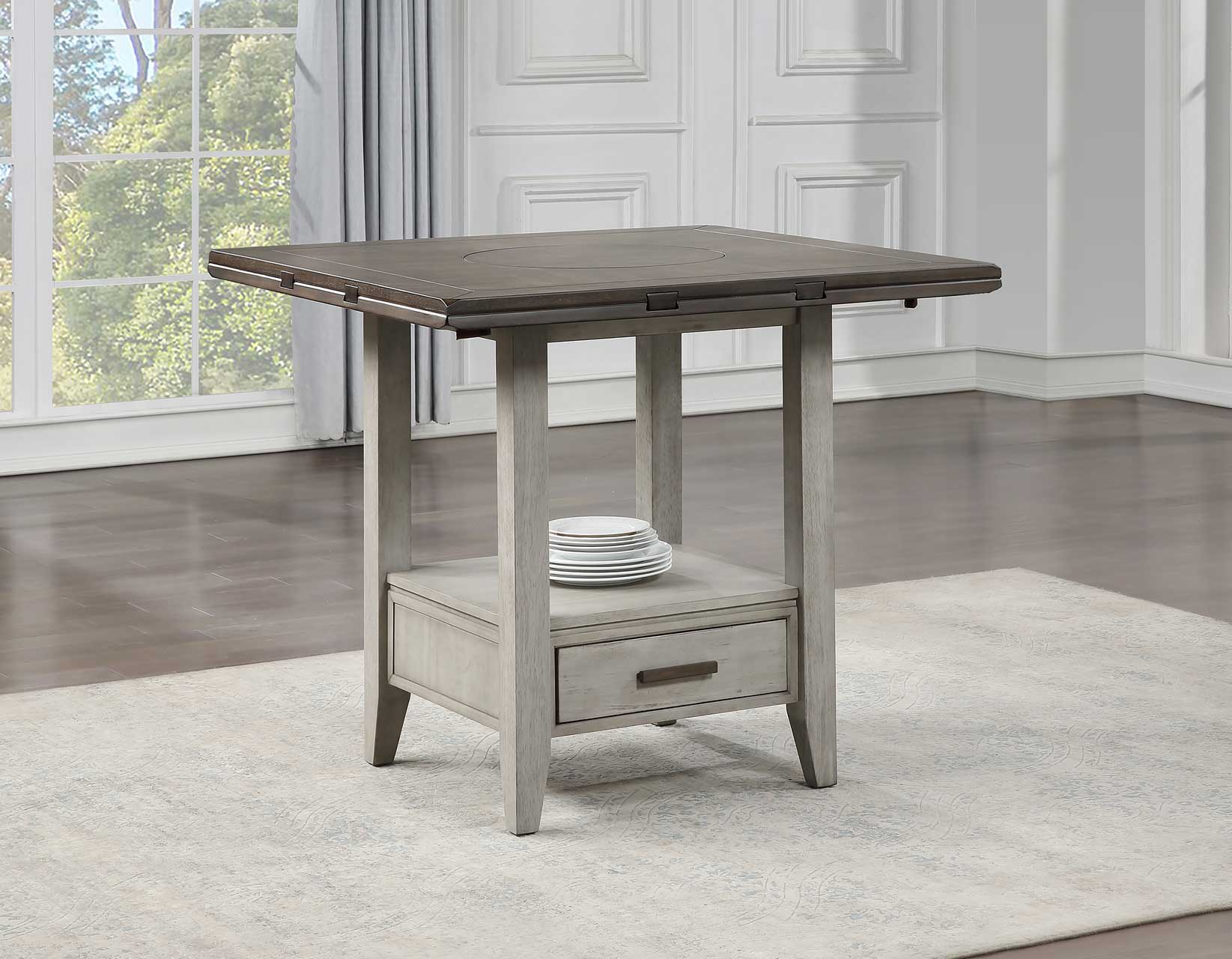 Casually styled and easy to live with, the Abacus Dropleaf Counter Dining Table features a great style with extra-special function. A smoky alabaster and putty two-tone finish presents a fashion-forward footprint that is enhanced by the Double Drop-Leaf Table that converts from a 42-inch square to a 59-inch round table just by lifting the leaves. The built-in lazy susan top makes serving a breeze. Add the comfort and look of the Counter Chair to expand your collection. Pair with the Abacus Counter Chair or use as a table by itself.