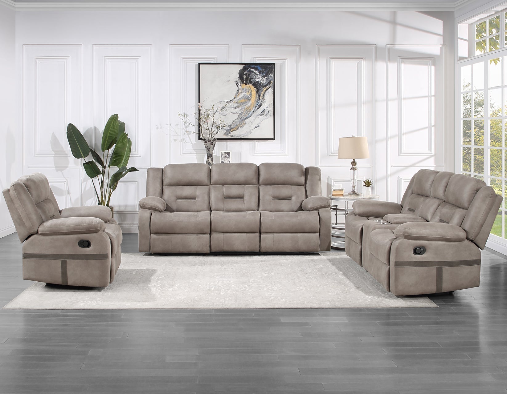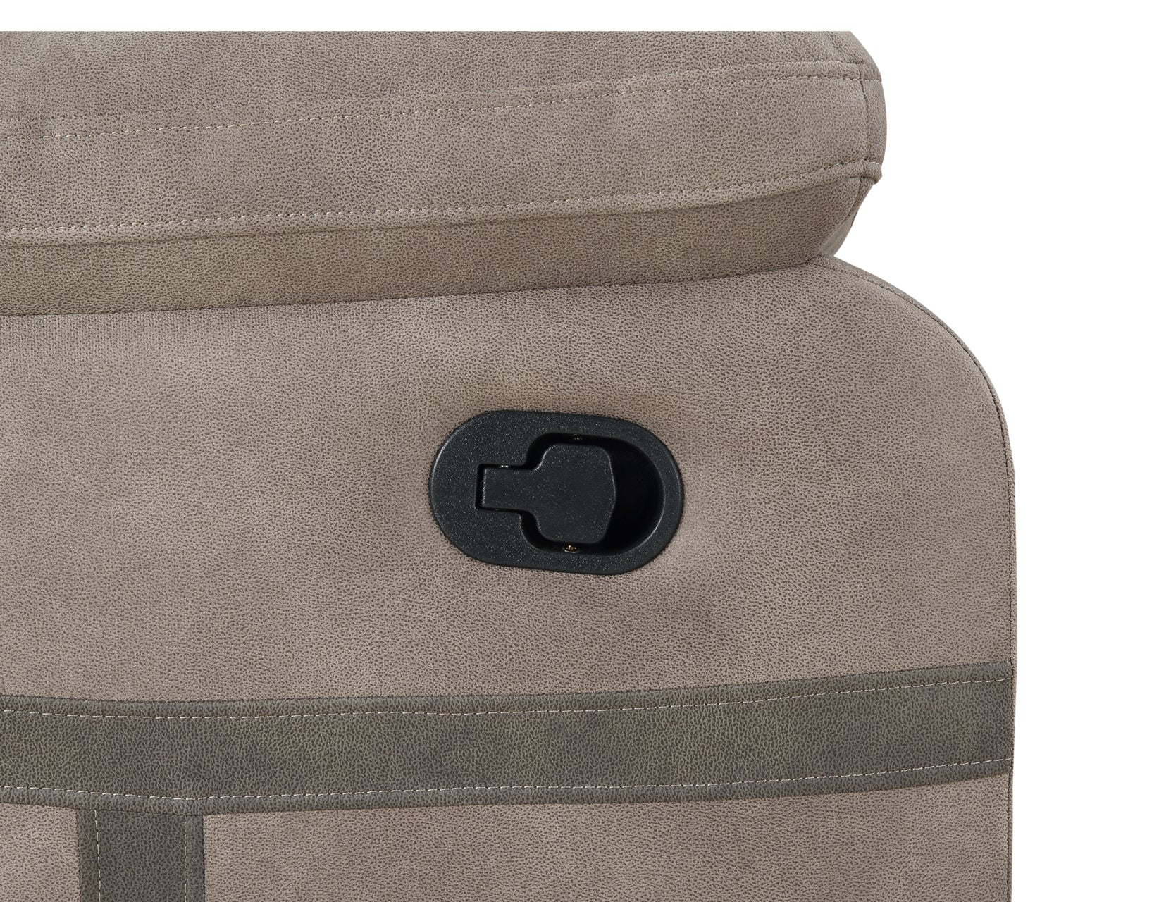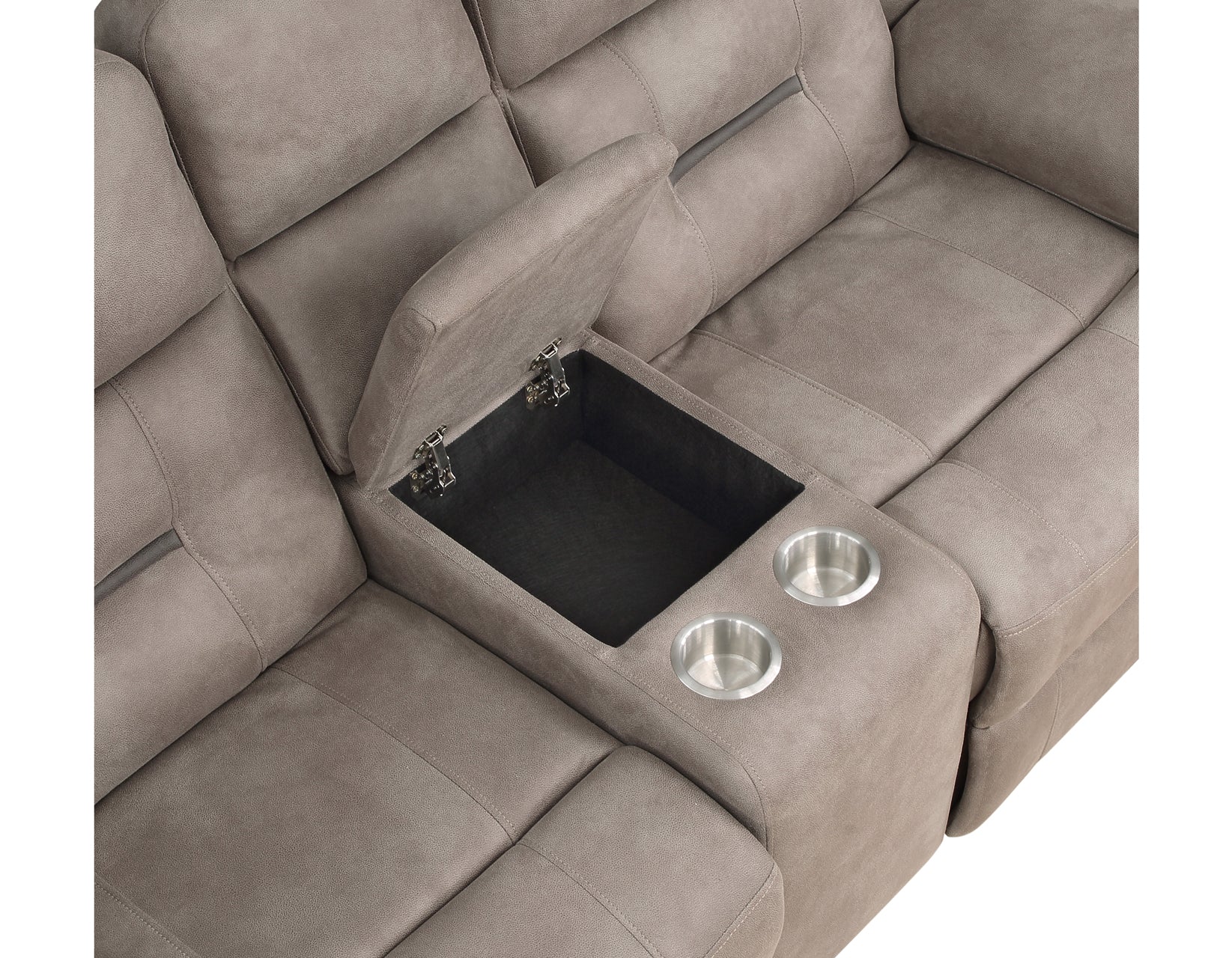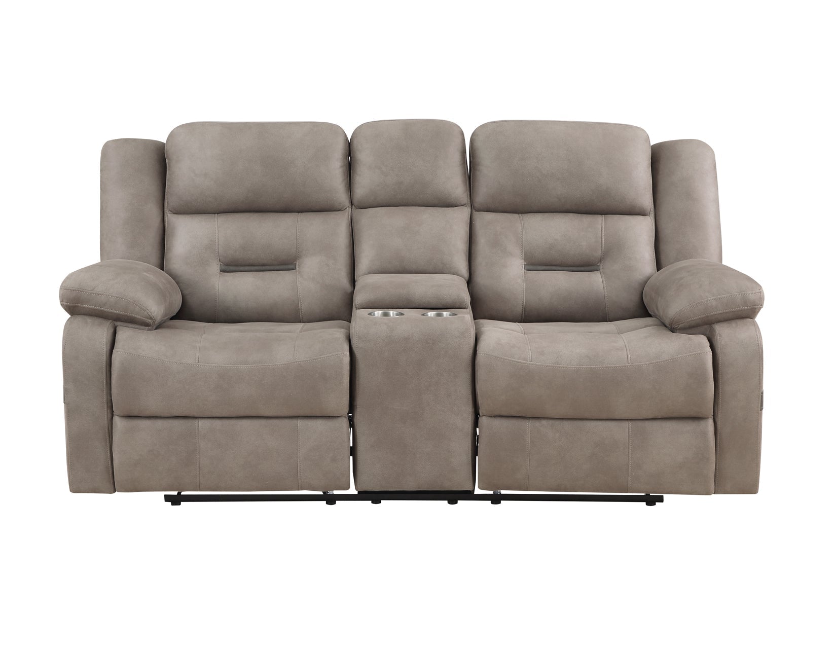 Meet the Abilene, the ultimate addition to your living room! This manual reclining console loveseat has a lift-top console and two stainless steel cupholders to keep your essentials close at hand. With a tan leatherette cover and dark olive accents on side panels, the Abilene is both functional and stylish with overstuffed arms, shaped seats and a dimpled back for complete relaxation and lumbar support. Enjoy your favorite movie or book in ultimate comfort with the Abilene. Its sleek design complements any living space, making it a perfect addition to your home decor. Experience the best in comfort and functionality – choose the Abilene today!