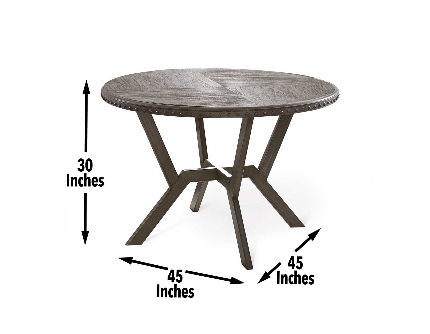 The Alamo Dining Table presents a mixed media package with a metal rimmed veneered top and geometric base. A gray finish gives the collection a neutral color that will blend with any decor. The transitional design and casual feel will make the table your favorite everyday place for dining for work.