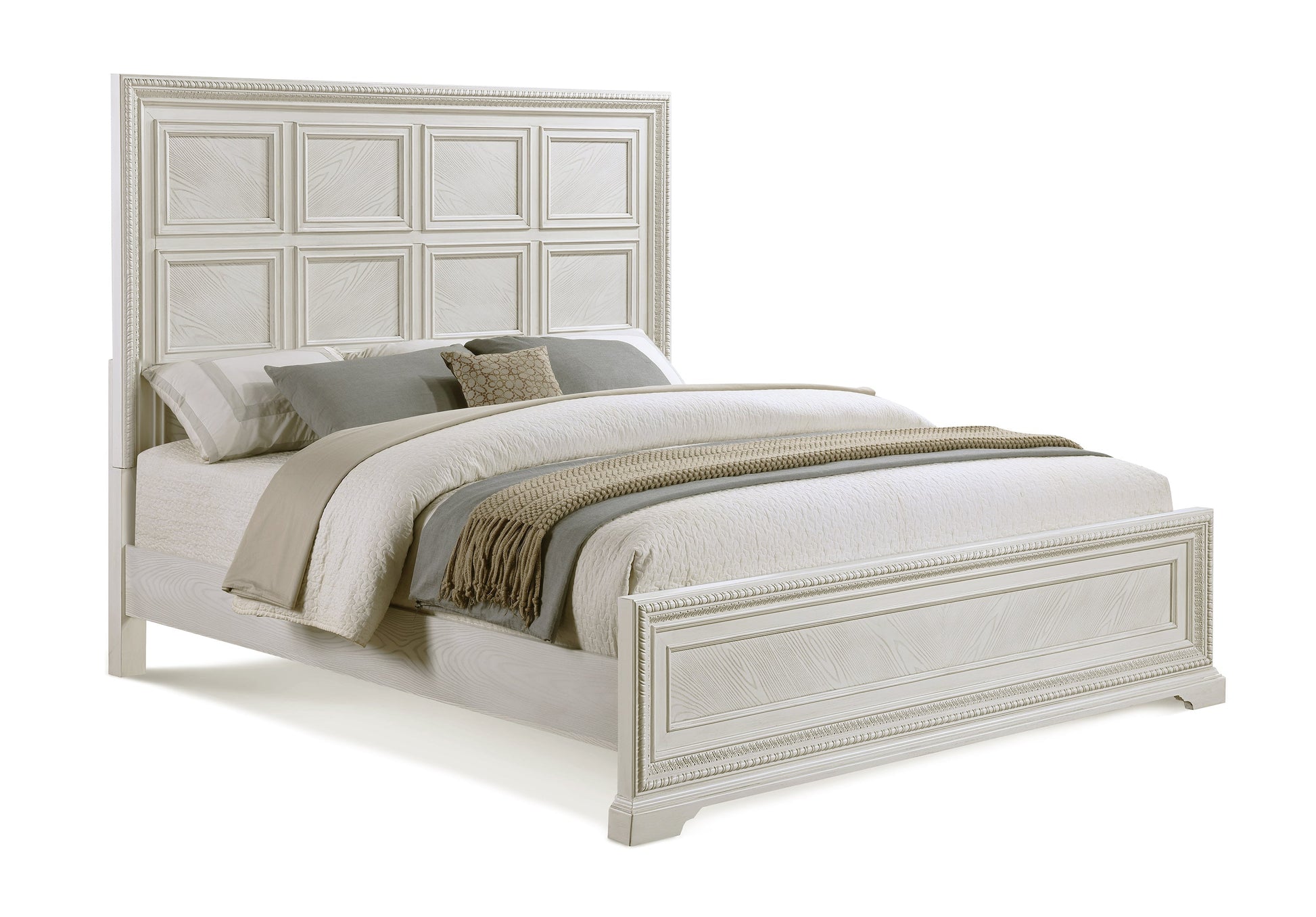 Alexandria Whitewash King Panel Bed