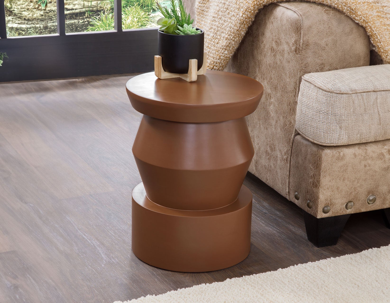 The Allen Side Table exudes a perfect fusion of eclectic charm and expert craftsmanship. Its distinctive hourglass shape makes it a striking accent in any room. Meticulously crafted from Acacia solids and engineered woods, it boasts a hand-painted natural terracotta finish. This warm and earthy hue imparts a cozy ambiance, enriching your space with its rich, rustic color that harmonizes with a wide range of interior styles.