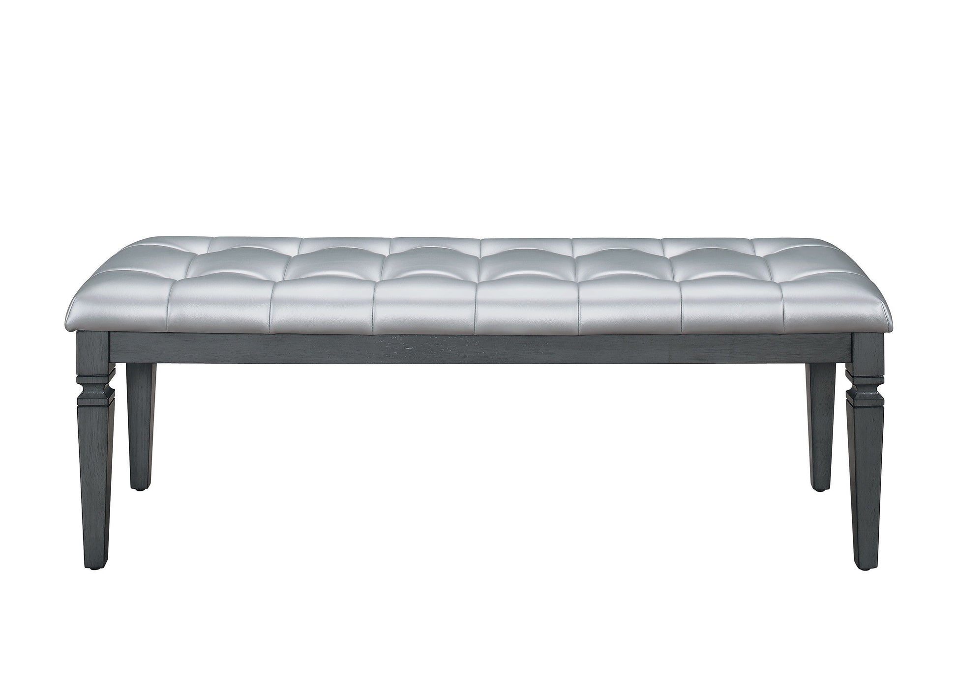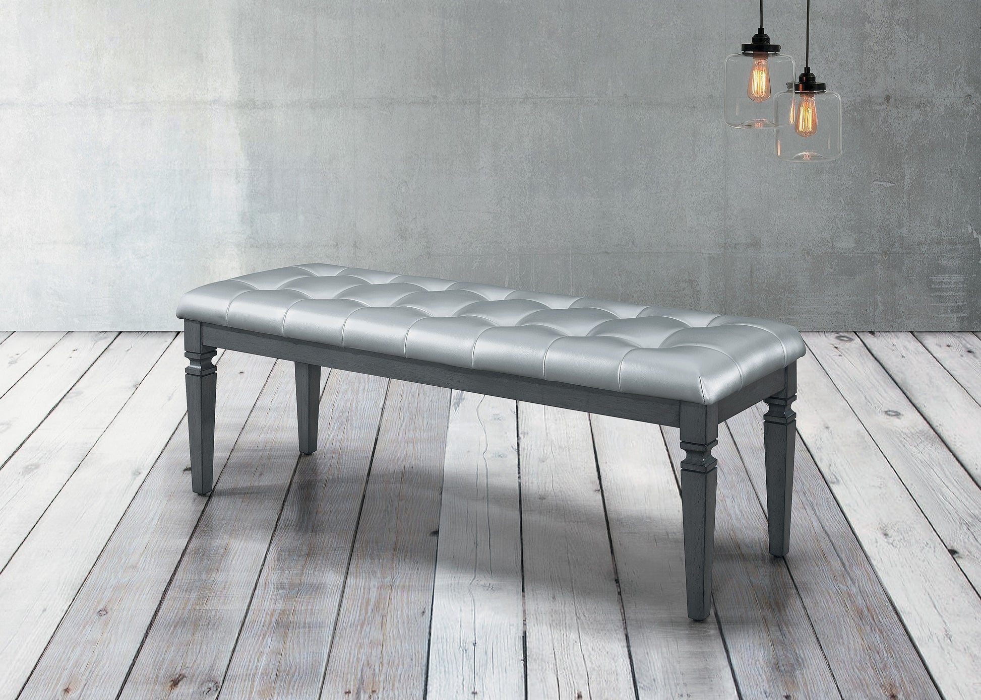 Glamour reigns in the design of the Allura Collection. Acrylic crystals center bed bench’s tufted seat, reflecting the light to create eye-catching drama. The gray finish of the bench’s framing lends a classic touch to your bedroom’s décor.