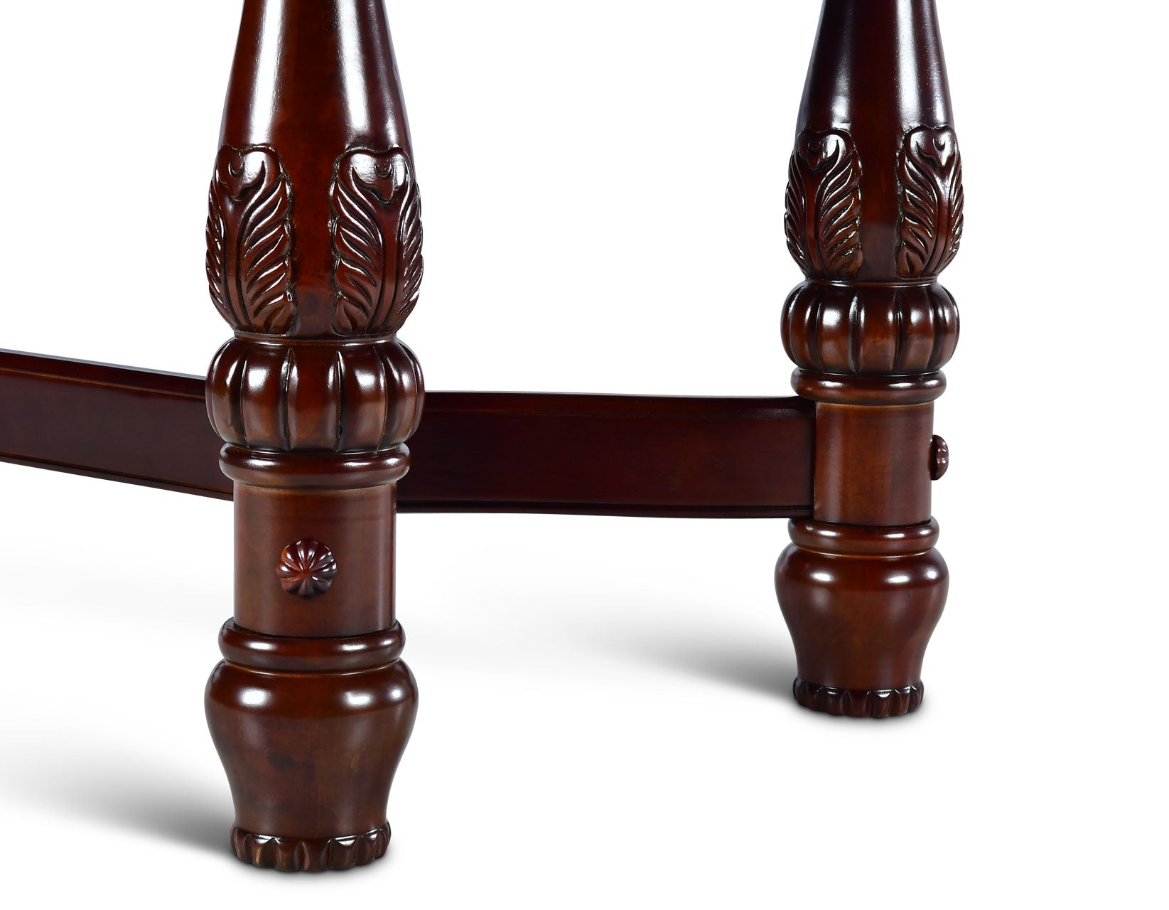 Opulent traditional styling with utmost attention to detail, Antoinette is sure to dress up any dining room. Classic acanthus leaf and grape moldings adorn the table and chair and the large-scaled table expands with a 24″ leaf to a full 120 inches to seat up to 10 people.