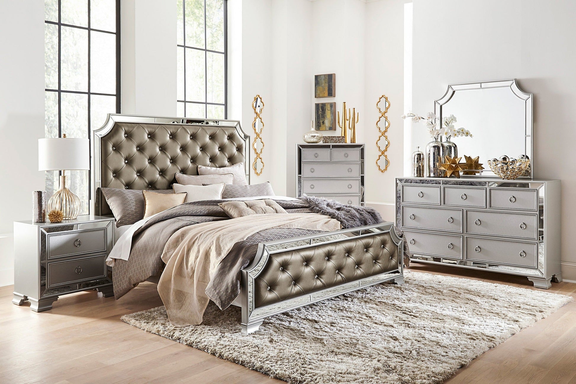 The reflection of your glamorous image is one of striking style and classic sophistication, all illuminated by the boldly designed Avondale Collection. Mirrored framing immediately draws your eye to the modern-traditional profile. Silver finished drop pull hardware centers each bead-molding adorned drawer front.