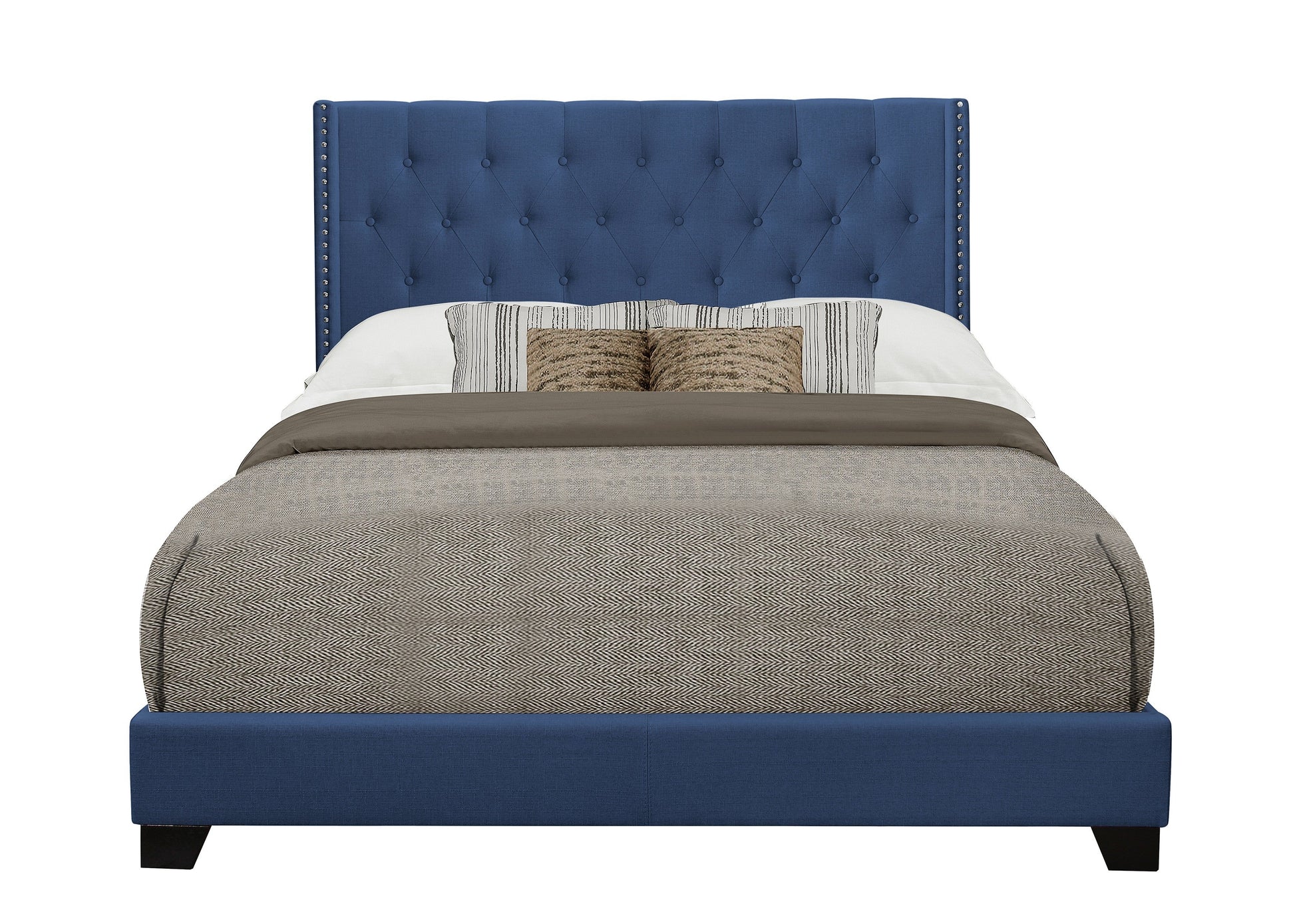 QUEEN BED W/BLUE FABRIC