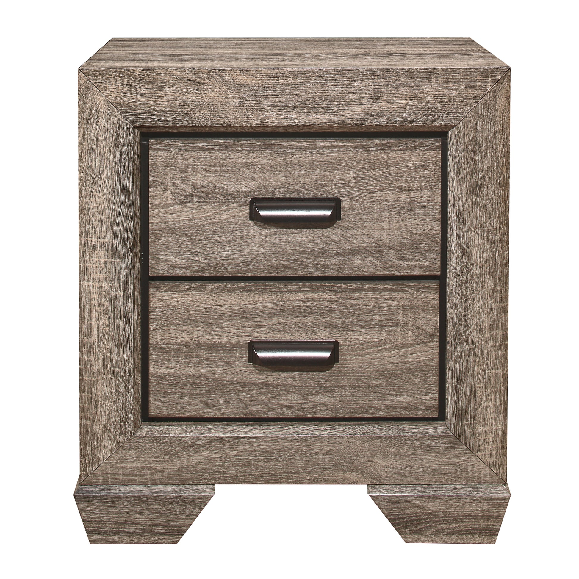 Blending the elements of contemporary design and rustic aesthetic, the Beechnut Collection is a unique addition to your bedroom. Dark under-paneling serves to highlight the natural finish enhancing the embossed faux-wood veneer of the nightstand's drawer fronts. Contrasting cup hardware punctuates each drawer front.
