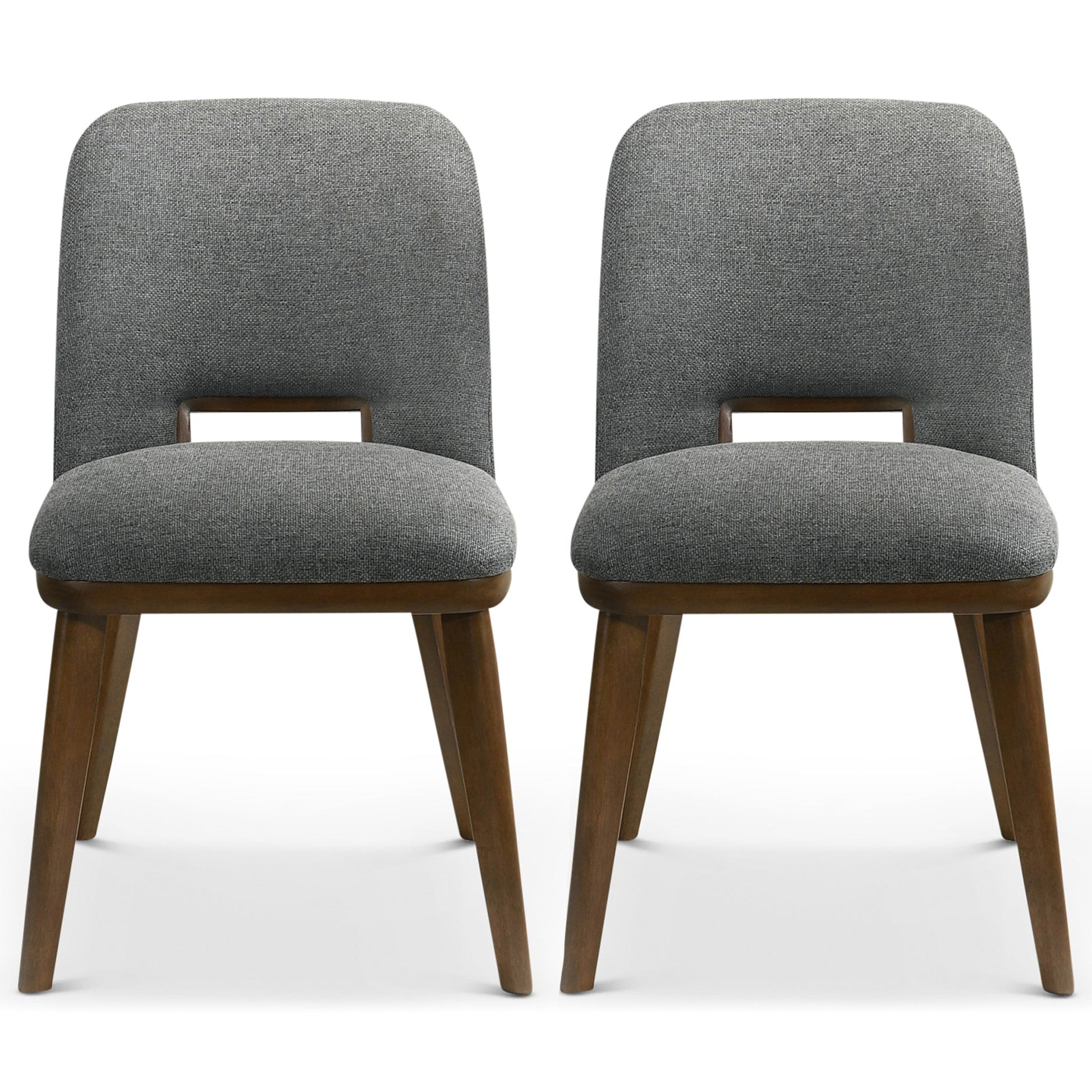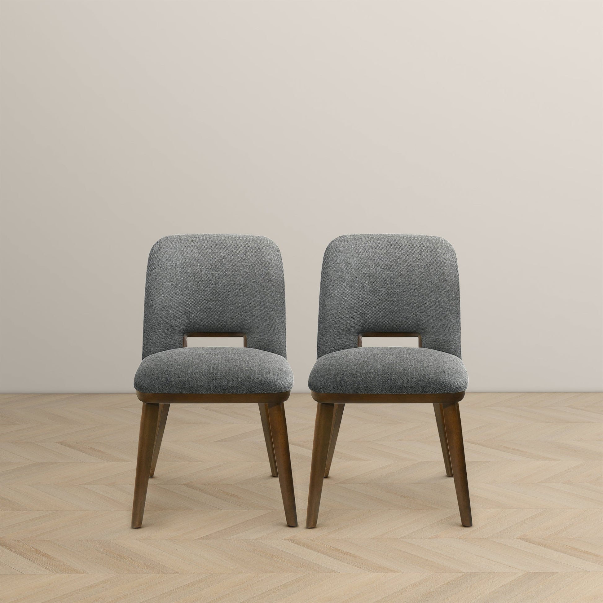 Introducing our Modern Dining Chairs – a harmonious blend of comfort, style, and functionality for your living spaces. Crafted with a solid wood walnut-colored base, these dining chairs effortlessly bring a touch of mid-century modern charm to your home. The set of 2 light grey fabric upholstered chairs not only exude sophistication but also ensure a cozy and comfortable dining experience.