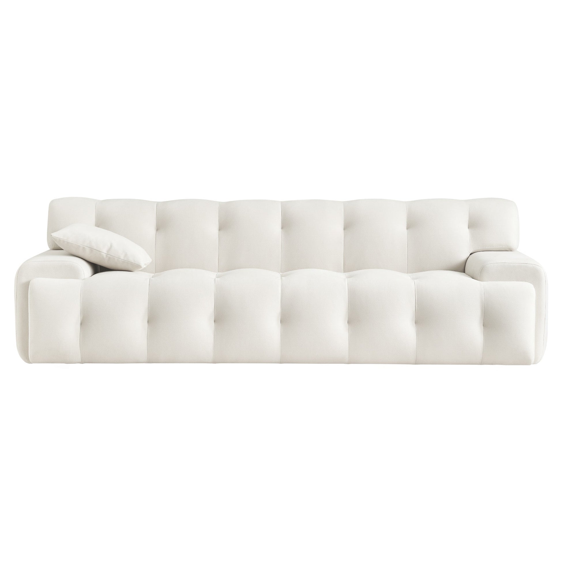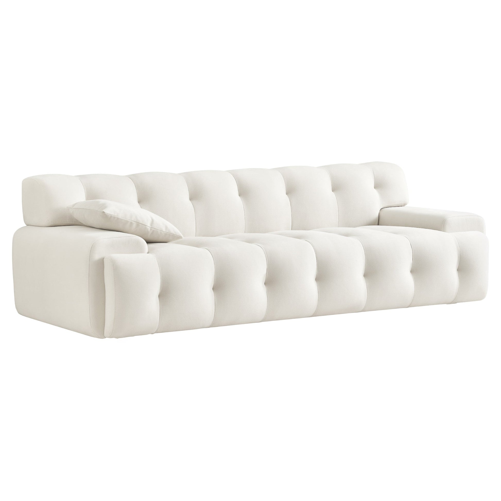 Crafted with plush velvet upholstery, its elegant cream hue adds sophistication to any space. Sink into its soft cushions and unwind in style. A timeless piece that exudes opulence and invites relaxation.