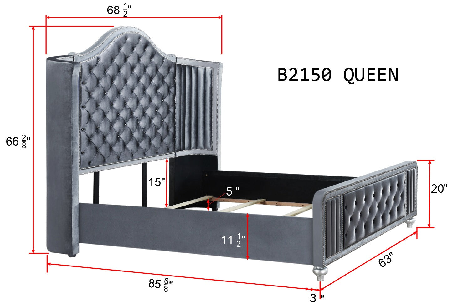Cameo Gray Queen Upholstered Wingback Panel Bed