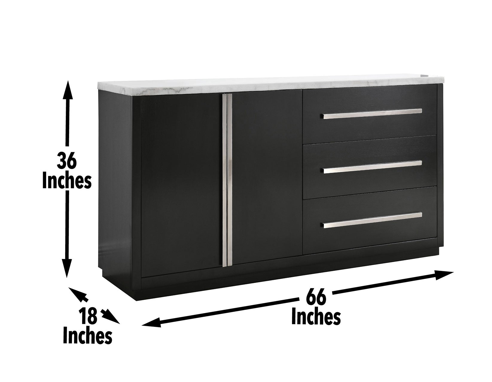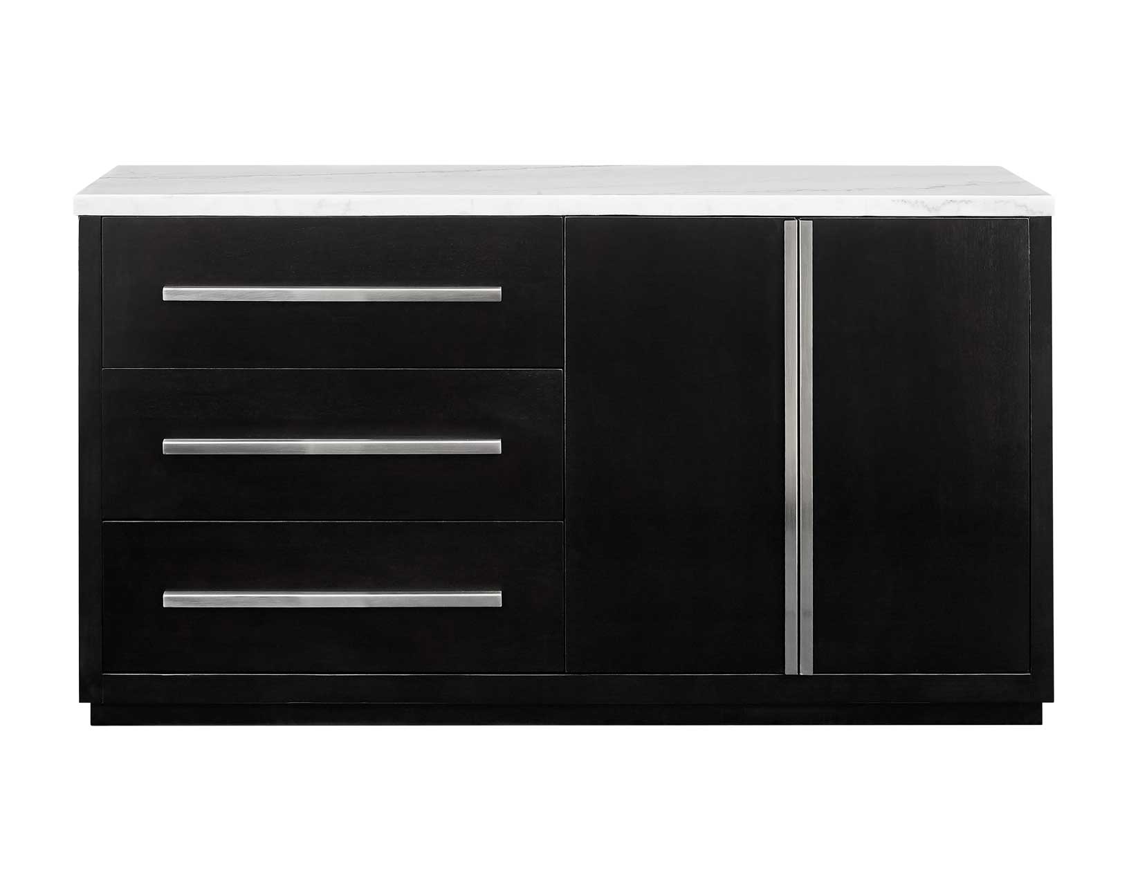 A clean modern look and asymmetrical design make the Camila Server perfect for any contemporary styled room. Generous storage add function to the fashion forward design of a storage piece that is as comfortable in a Home Office setting as it is in a Dining room. A white marble top contrasts beautifully with the ebony finished wood in a neutral palette that stands out for style.