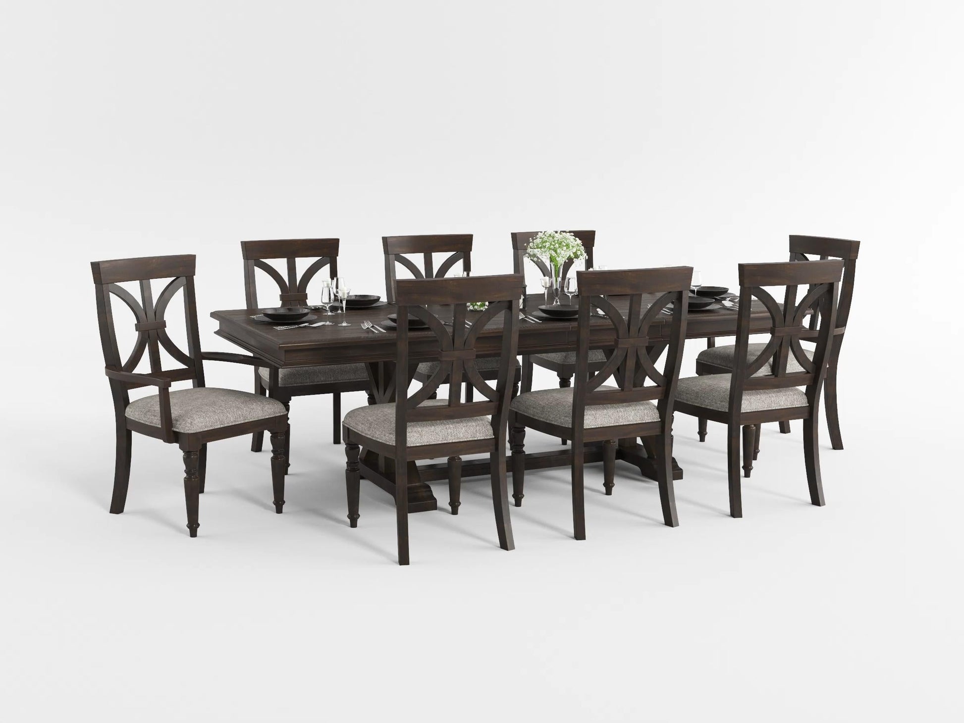 The solid transitional styling of the Cardano Collection creates an impactful design presence in your dining room. Utilizing distinct accent techniques – plank effect, rasping, saw marks – and pairing them with traditional framing and a rich finish – driftwood charcoal over acacia veneers – creates a collection that is worthy of your dining room.