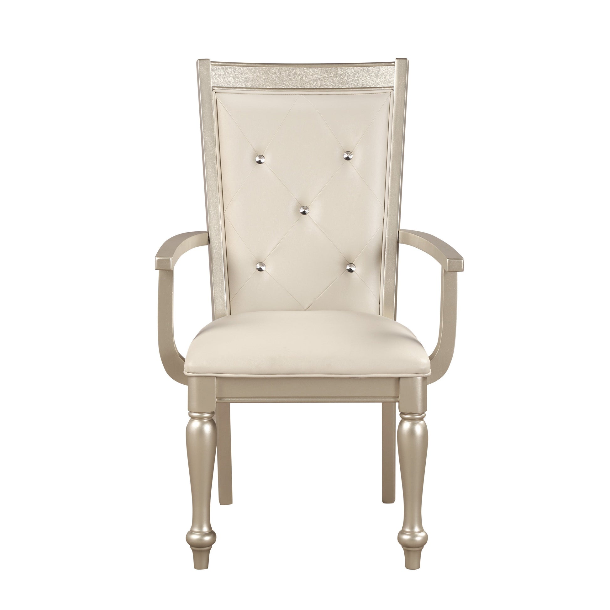 The look of traditional design is updated for the modern traditional home in the Celandine Collection. Crystal tufting immediately draws the eyes to the pearlized finish of the faux leather chair backs. With each of the aforementioned elements, subtle glamour will be achieved in the design of your elegant dining room.