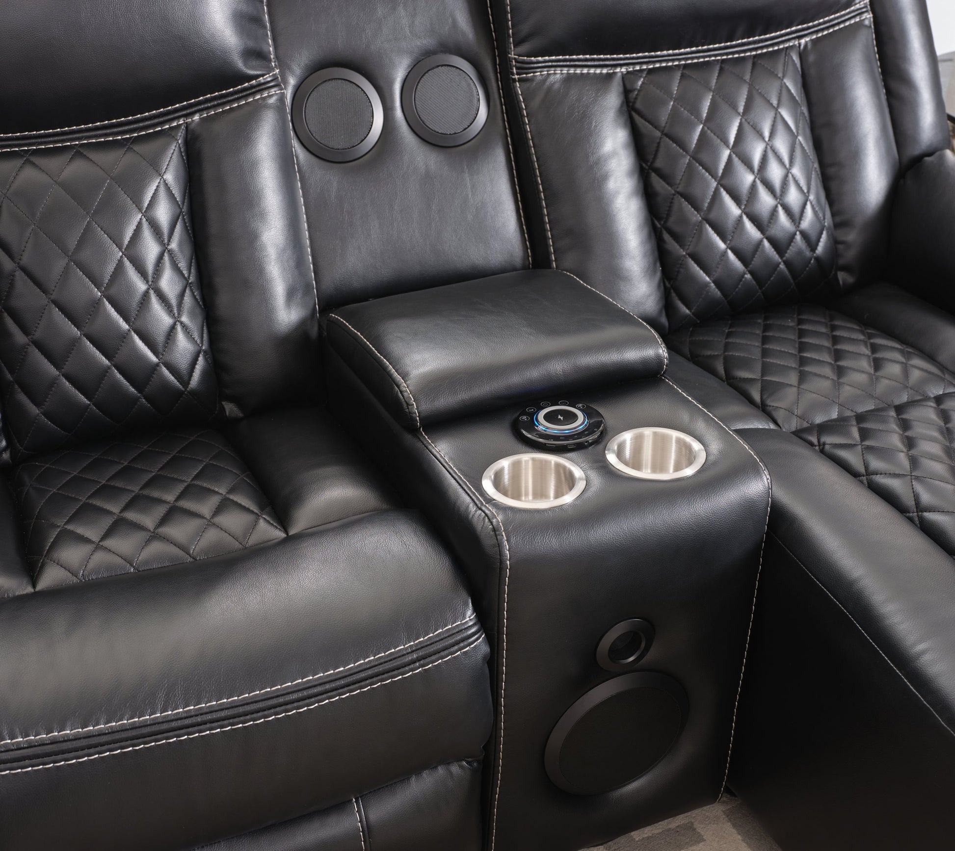 2 Recliners + Push Back Chaise. Bluetooth Speaker. Smart Phone Charging Pad. USB/USB-C Charging Ports.