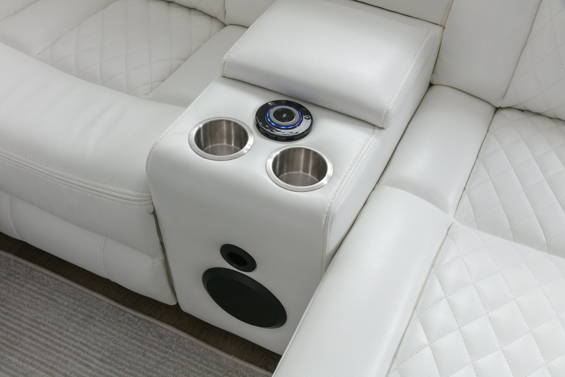 2 Recliners + Push Back Chaise. Bluetooth Speaker. Smart Phone Charging Pad. USB/USB-C Charging Ports.