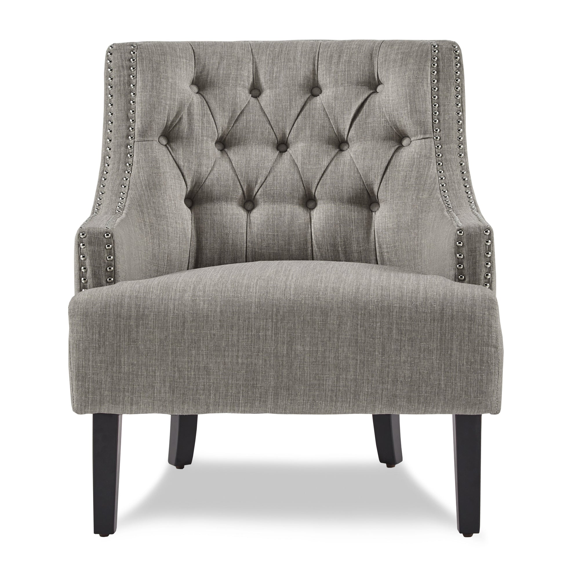 High polish nailhead accents and defines the profile of the Charisma Collection. This modern traditional chocolate fabric-covered accent chair provides a stylish, yet functional addition to your home. The taupe is offered in 3 additional distinct colors: Teal, chocolate and indigo.