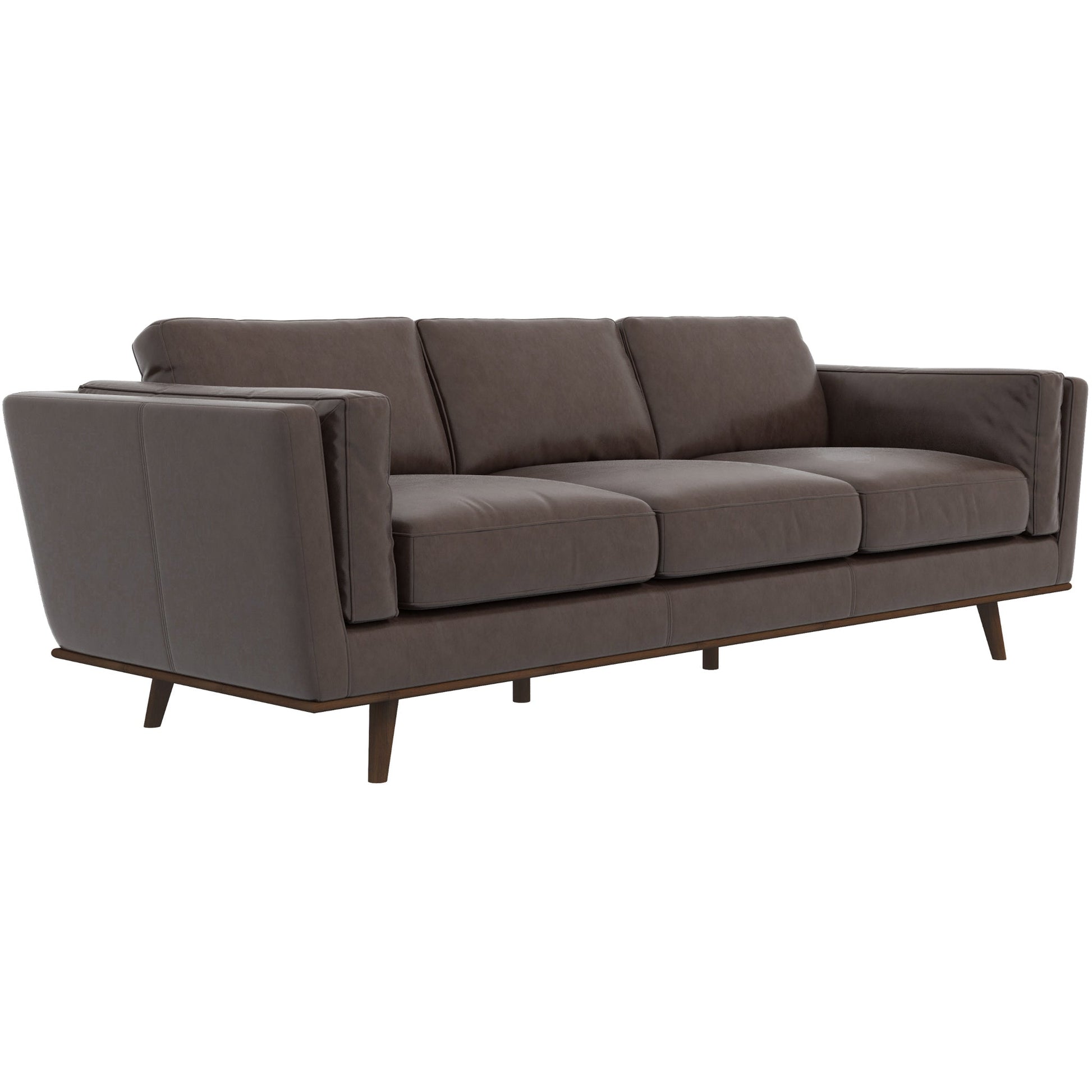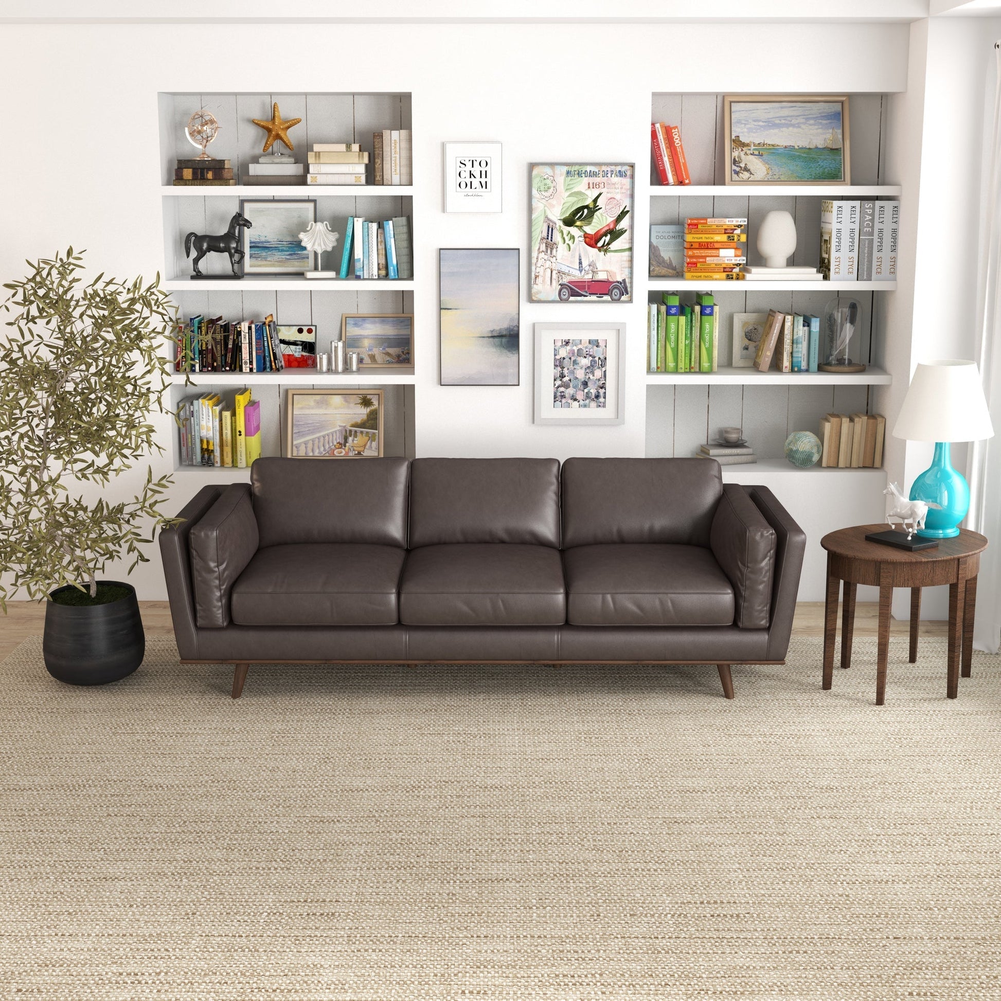 Anchor your space in mid-century modern style with the Chase brown genuine leather sofa. Combining durable, top-quality craftsmanship and high-density foam this sofa will provide you with great comfort and undoubtedly become the centerpiece of your living room, den, urban loft, condo or home office. It is made of genuine leather and can be cleaned with a non-abrasive cleaning solution followed by a quick microfiber cloth. Removable legs allow for simple delivery for tight spaces. Available in a variety of timeless colors, you're sure to find something that matches your decor.